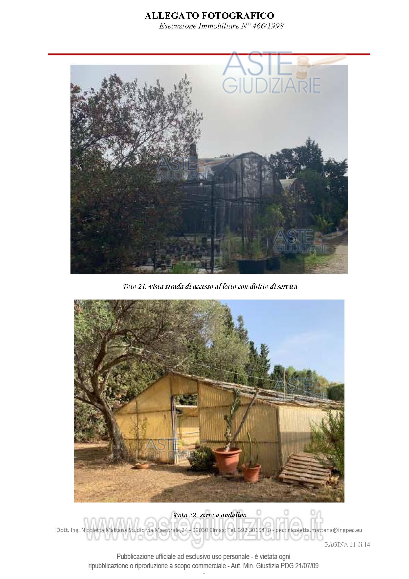 Vendita all'asta Senza incanto, con gara telematica asincrona - LOTTO UNICO: Lotto unico: quota pari a 1/1 del diritto di proprietà del terreno in Comune di Pula, località Santa Margherita, distinto al Catasto Terreni al foglio 55 particella 127 avente una superficie di 32.800 m² . Prezzo base € 112.118,40 (offerta minima € 84.088,80). Data inizio operazioni di vendita: 28/05/2026 ore 15:00. Professionista delegato alla vendita Dott. Alessandro Casadio - Email "alessandro.casadio@tiscali.it"; Tel. 070485314. Custode Giudiziario Ivg Cagliari - Email "ivg.visiteimmobili@tiscali.it"; Tel. 0702299036. Rif. Tribunale di Cagliari - Esecuzione immobiliari n. 466/1998