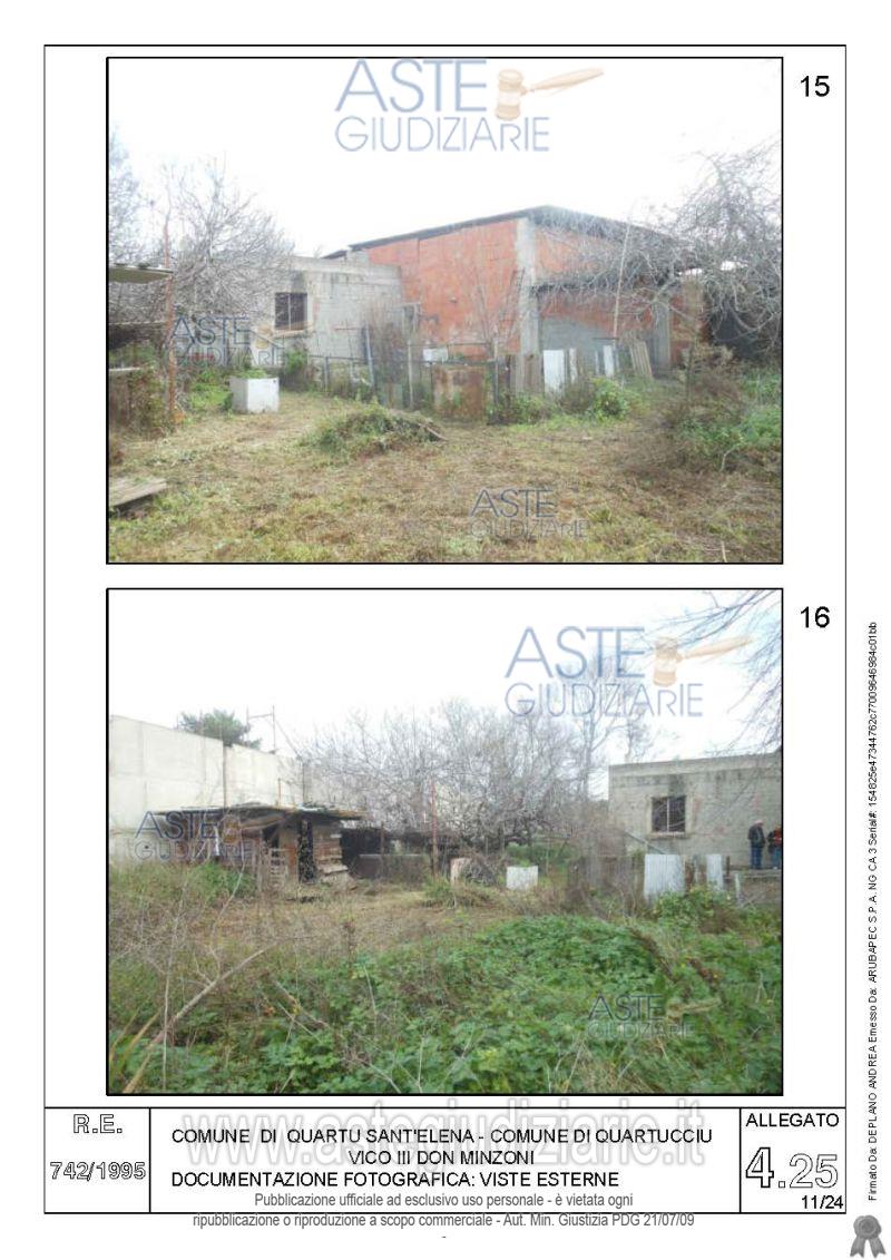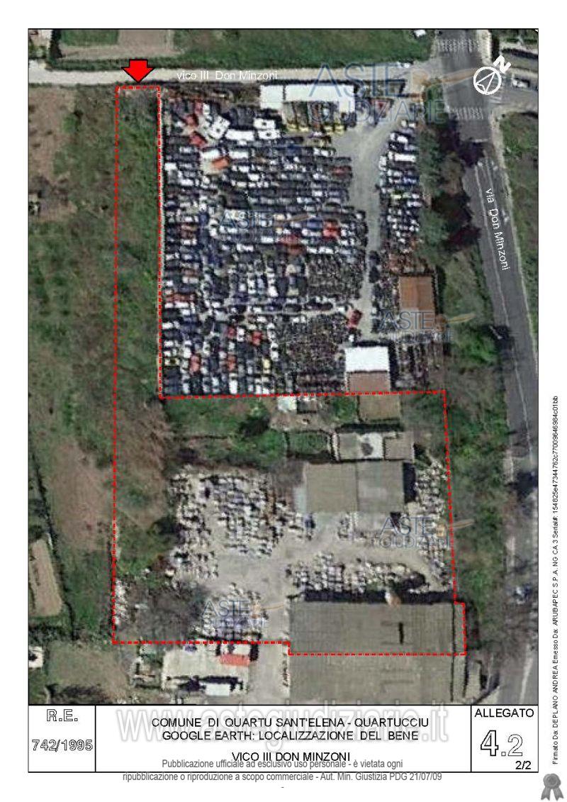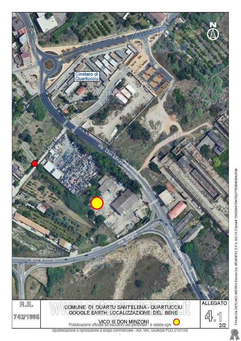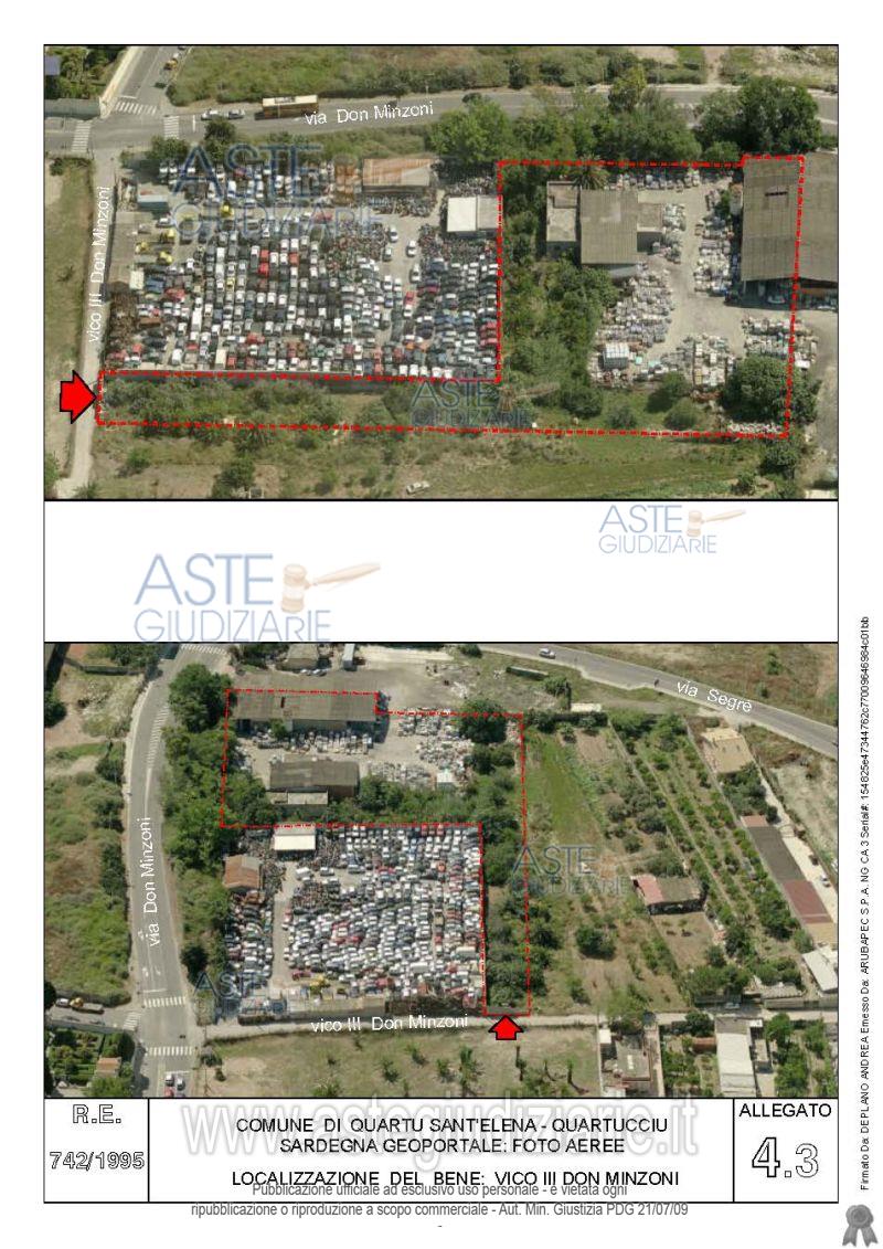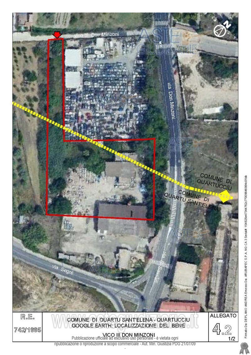 Vendita all'asta Senza incanto, con gara telematica asincrona - LOTTO 4: Quota pari all’intero del diritto di proprietà sul complesso artigianale con cortili e pertinenze formanti un unico lotto, con sovrastanti fabbricati, a cavallo tra il Comune di Quartu sant’Elena e il Comune di Quartucciu, Loc. Su Idanu. Prezzo base € 161.800,00 (offerta minima € 121.350,00). Data inizio operazioni di vendita: 13/05/2026 ore 09:00. Giudice Silvia Cocco. Professionista delegato alla vendita Not. Giovanni Gorini - Email "ufficiouniconotai@pec.it"; Tel. 07060222574. Custode Giudiziario Ivg Cagliari - Email "ivg.visiteimmobili@tiscali.it"; Tel. 0702299036. Rif. Tribunale di Cagliari - Esecuzione immobiliare post legge 80 n. 742/1995
