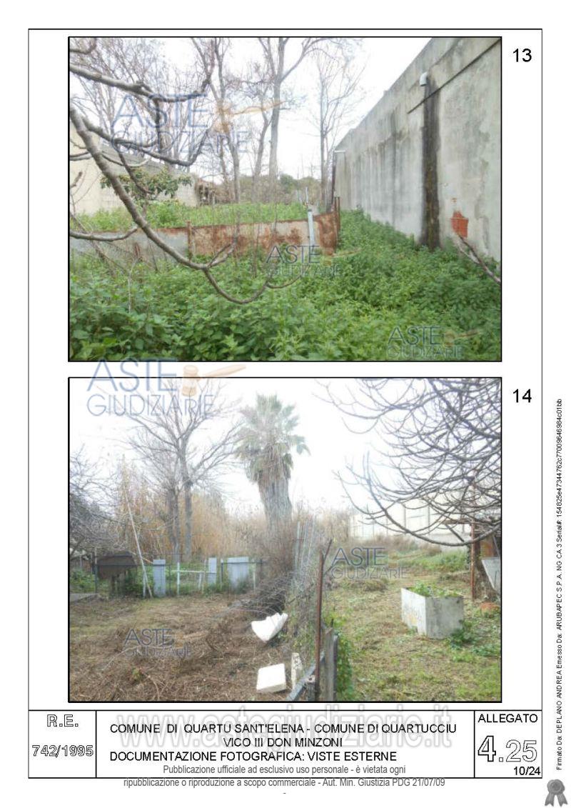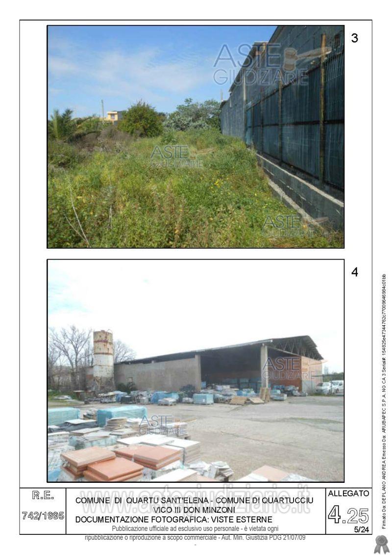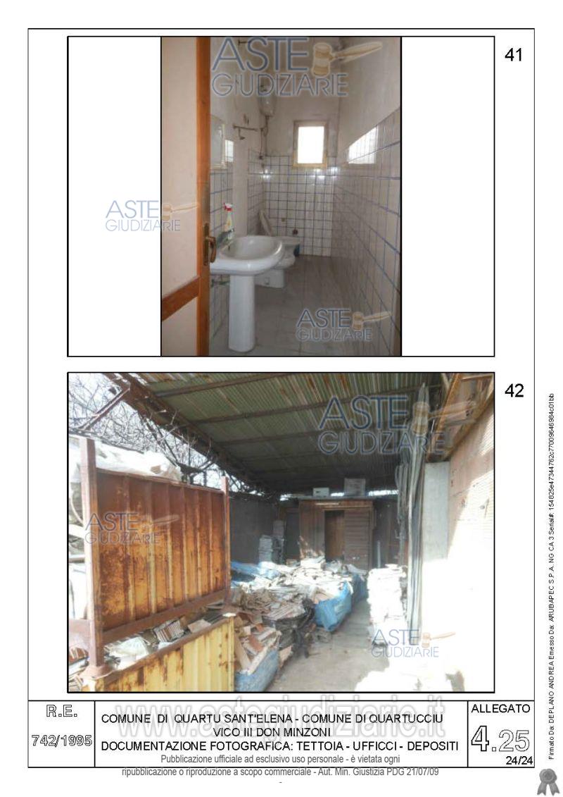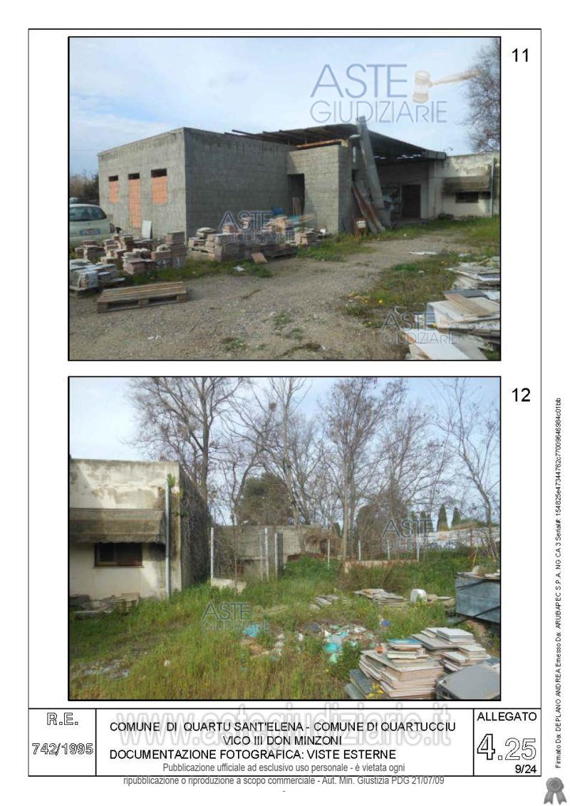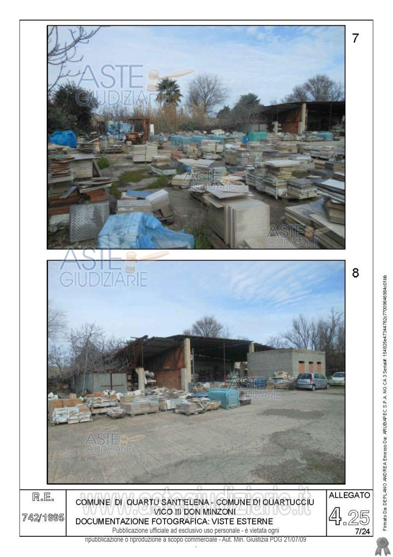 Vendita all'asta Senza incanto, con gara telematica asincrona - LOTTO 4: Quota pari all’intero del diritto di proprietà sul complesso artigianale con cortili e pertinenze formanti un unico lotto, con sovrastanti fabbricati, a cavallo tra il Comune di Quartu sant’Elena e il Comune di Quartucciu, Loc. Su Idanu. Prezzo base € 161.800,00 (offerta minima € 121.350,00). Data inizio operazioni di vendita: 13/05/2026 ore 09:00. Giudice Silvia Cocco. Professionista delegato alla vendita Not. Giovanni Gorini - Email "ufficiouniconotai@pec.it"; Tel. 07060222574. Custode Giudiziario Ivg Cagliari - Email "ivg.visiteimmobili@tiscali.it"; Tel. 0702299036. Rif. Tribunale di Cagliari - Esecuzione immobiliare post legge 80 n. 742/1995