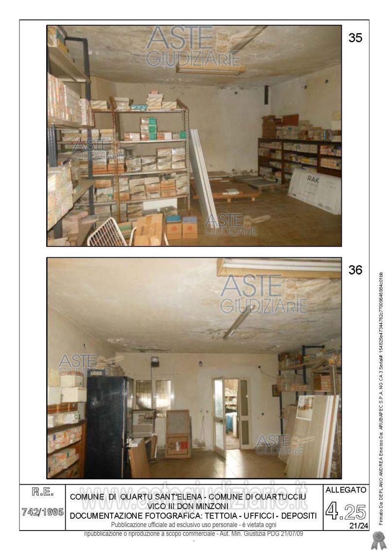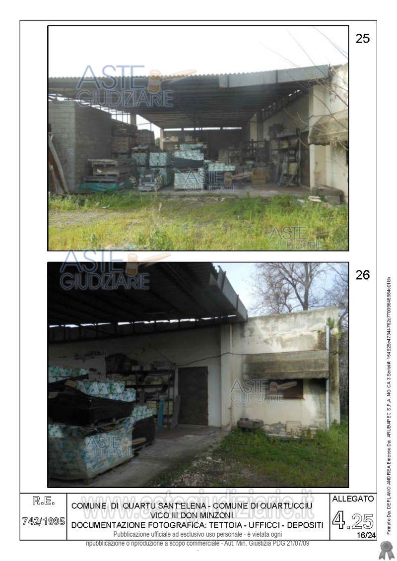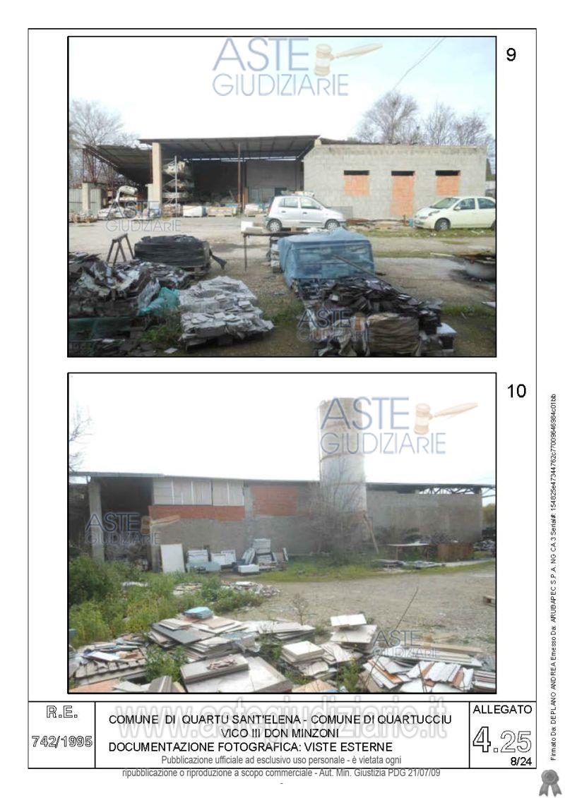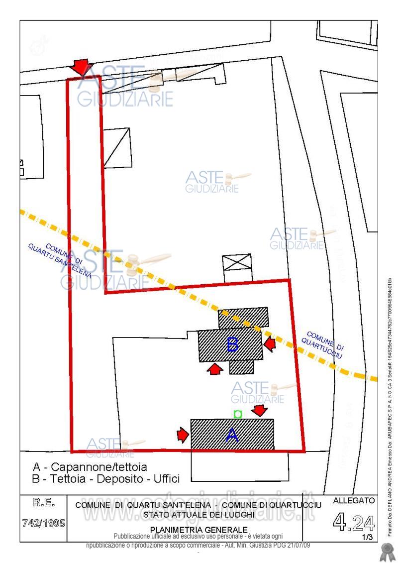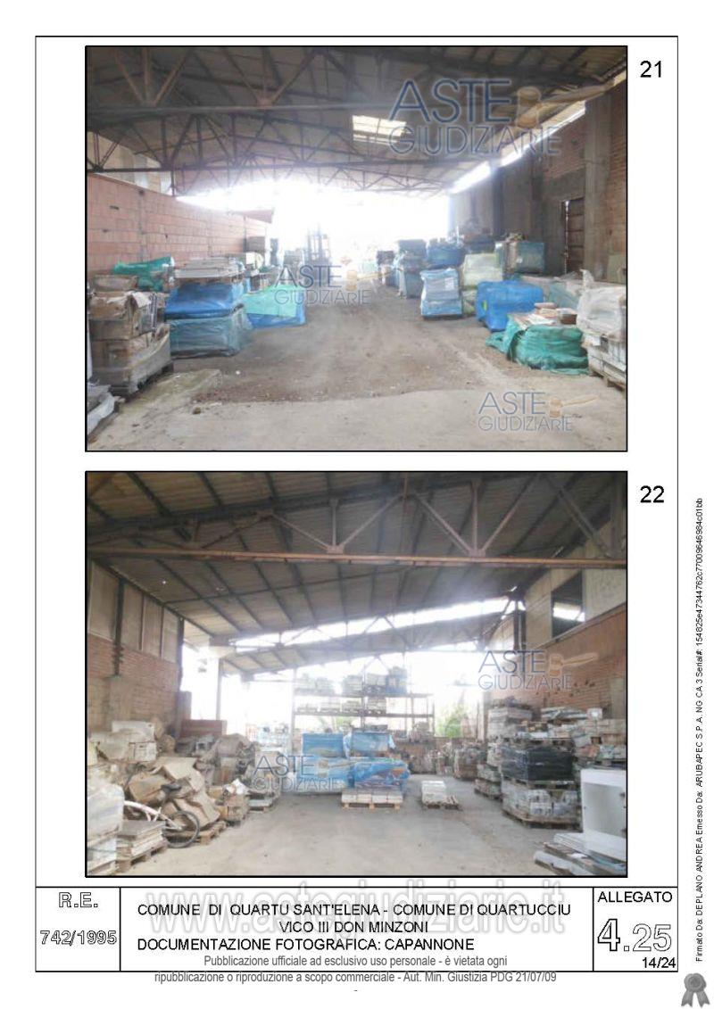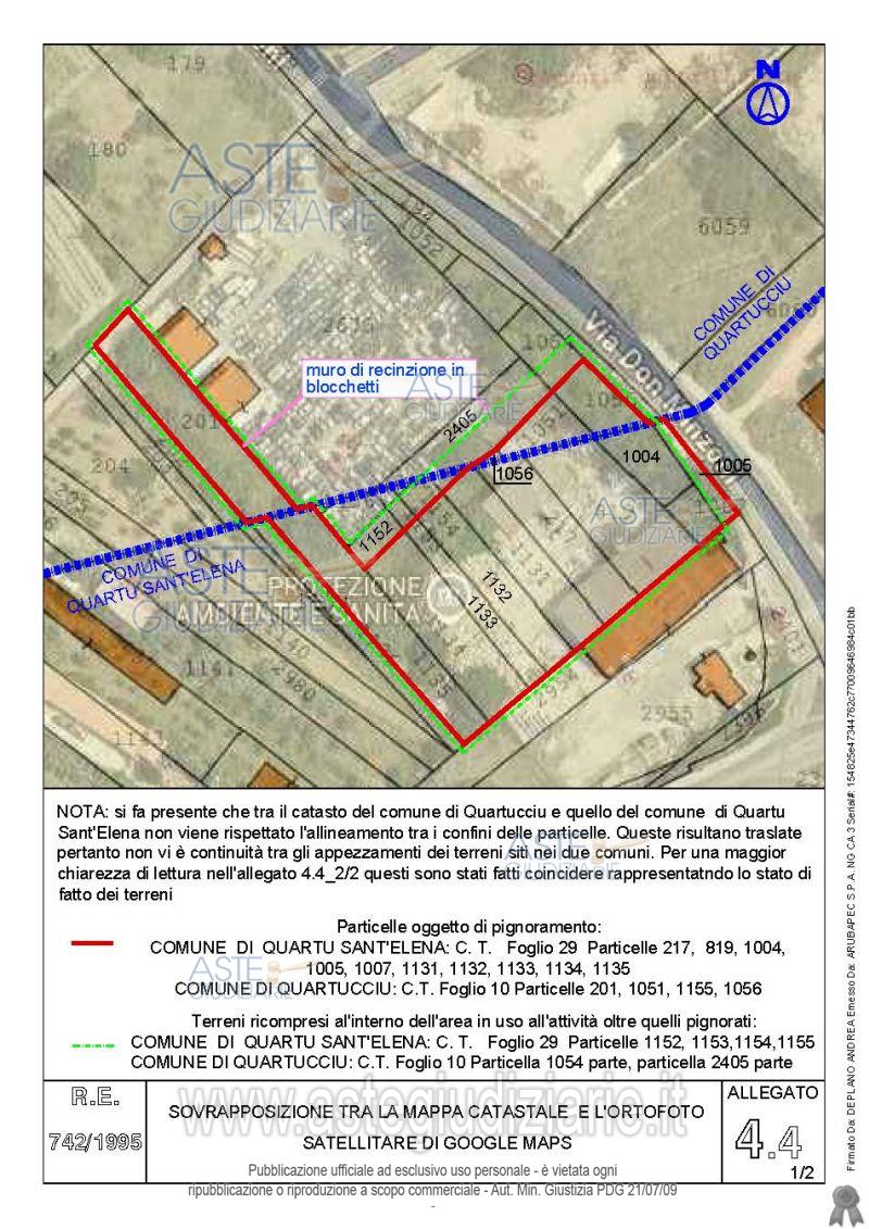 Vendita all'asta Senza incanto, con gara telematica asincrona - LOTTO 4: Quota pari all’intero del diritto di proprietà sul complesso artigianale con cortili e pertinenze formanti un unico lotto, con sovrastanti fabbricati, a cavallo tra il Comune di Quartu sant’Elena e il Comune di Quartucciu, Loc. Su Idanu. Prezzo base € 161.800,00 (offerta minima € 121.350,00). Data inizio operazioni di vendita: 13/05/2026 ore 09:00. Giudice Silvia Cocco. Professionista delegato alla vendita Not. Giovanni Gorini - Email "ufficiouniconotai@pec.it"; Tel. 07060222574. Custode Giudiziario Ivg Cagliari - Email "ivg.visiteimmobili@tiscali.it"; Tel. 0702299036. Rif. Tribunale di Cagliari - Esecuzione immobiliare post legge 80 n. 742/1995
