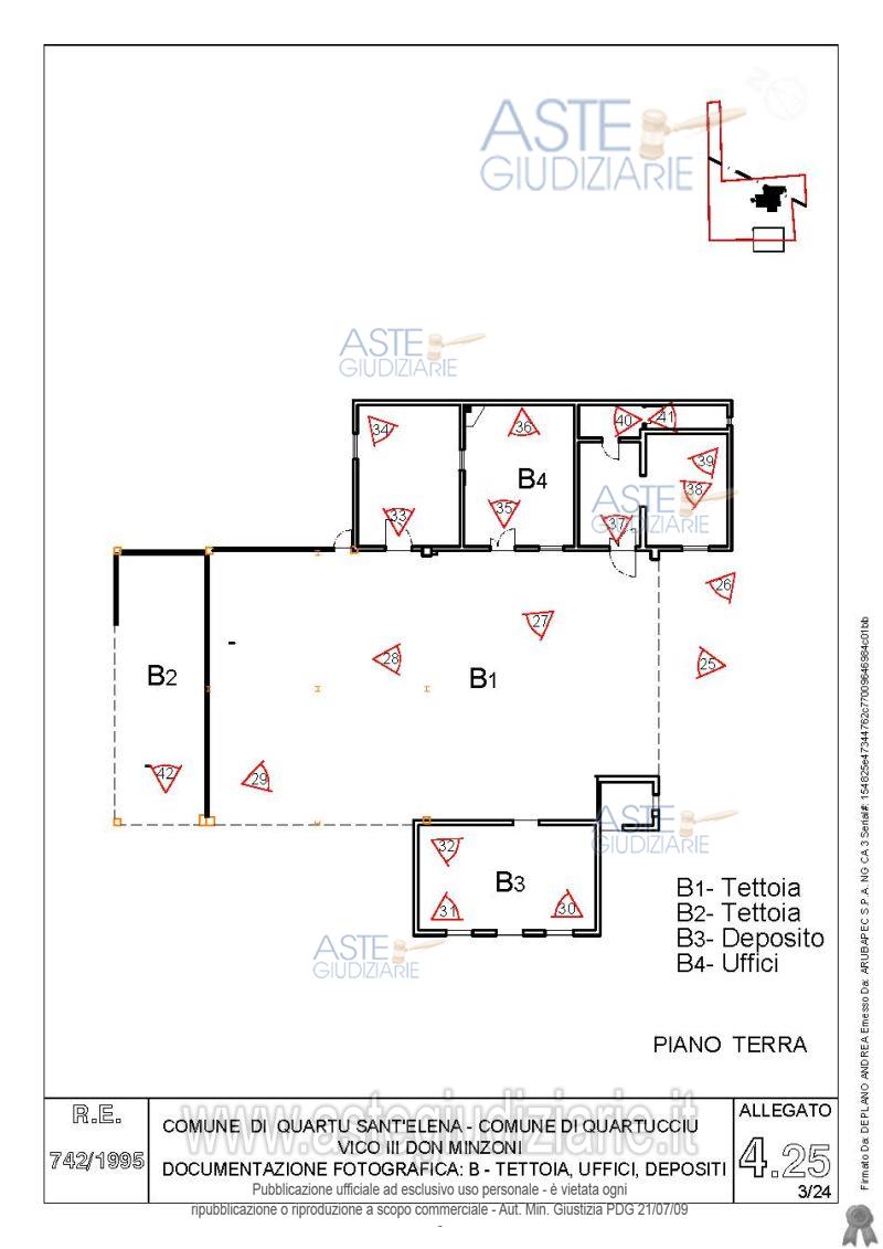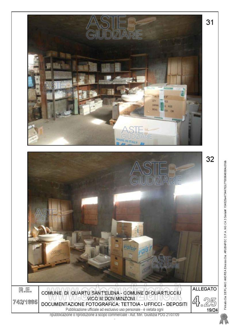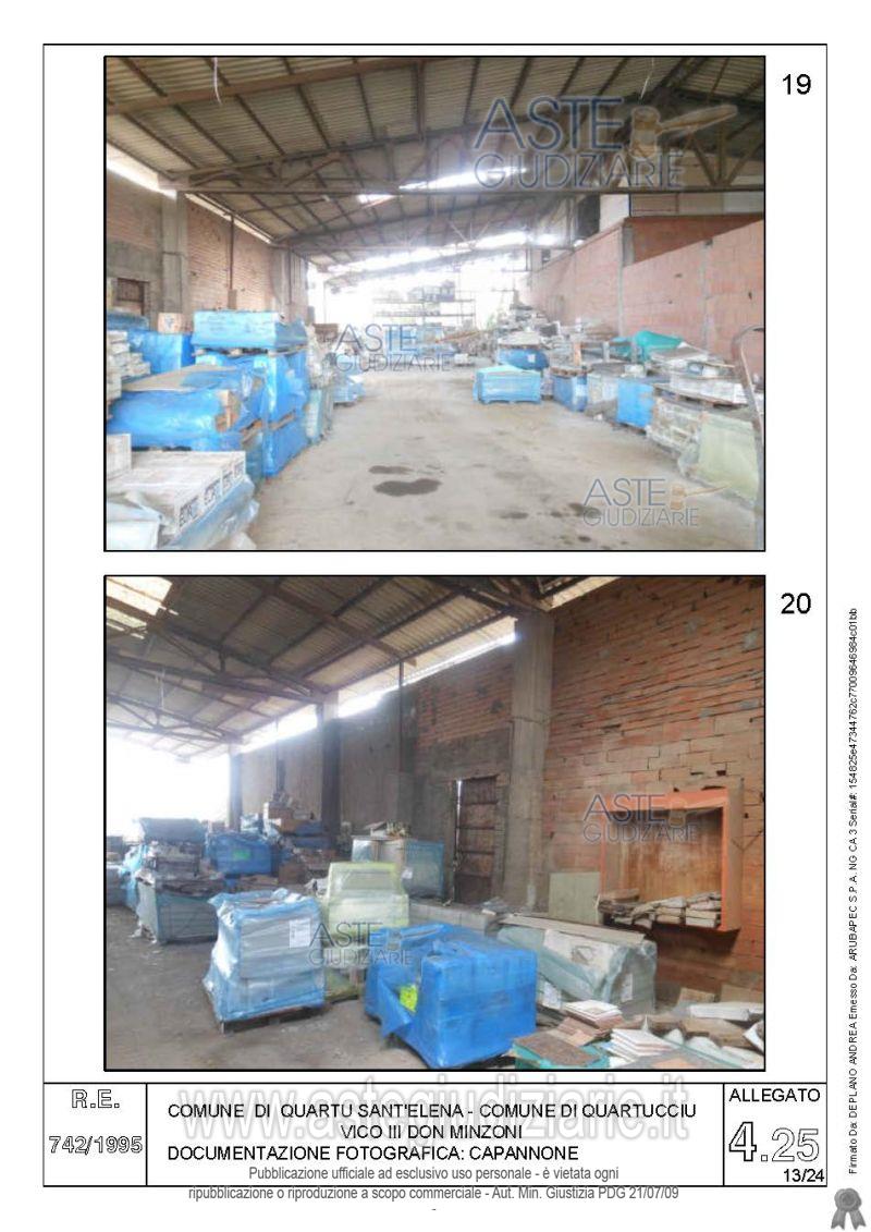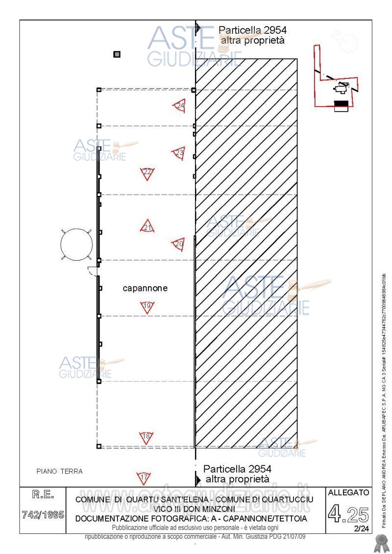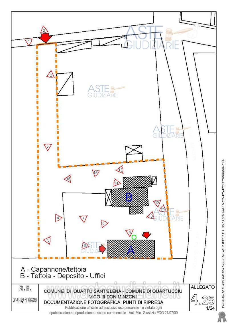 Vendita all'asta Senza incanto, con gara telematica asincrona - LOTTO 4: Quota pari all’intero del diritto di proprietà sul complesso artigianale con cortili e pertinenze formanti un unico lotto, con sovrastanti fabbricati, a cavallo tra il Comune di Quartu sant’Elena e il Comune di Quartucciu, Loc. Su Idanu. Prezzo base € 161.800,00 (offerta minima € 121.350,00). Data inizio operazioni di vendita: 13/05/2026 ore 09:00. Giudice Silvia Cocco. Professionista delegato alla vendita Not. Giovanni Gorini - Email "ufficiouniconotai@pec.it"; Tel. 07060222574. Custode Giudiziario Ivg Cagliari - Email "ivg.visiteimmobili@tiscali.it"; Tel. 0702299036. Rif. Tribunale di Cagliari - Esecuzione immobiliare post legge 80 n. 742/1995