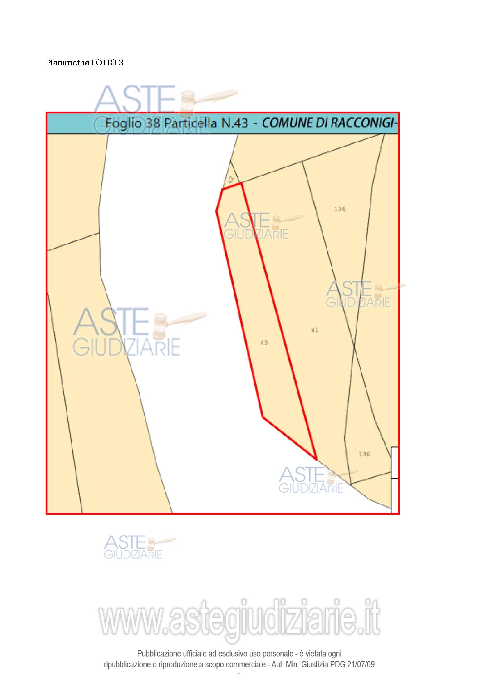 Vendita all'asta Senza incanto, con gara telematica sincrona - LOTTO 3: Terreno agricolo nel Comune di Racconigi (CN), foglio 38, particella 43, Incolt.Prod., Sup. 1.509 mq posto lungo il torrente Maira nel Comune di Racconigi.Terreno nel Comune di Racconigi (CN), foglio 38, particella 149, Incolt.Prod., Sup. 18.465 mqTerreno nel Comune di Racconigi (CN), foglio 38, particella 202, Bosco Ceduo, Sup. 1.922 mqTerreno nel Comune di Racconigi (CN), foglio 36, particella 263, Area Rurale, Sup. 250 mq posto nel comune di Racconigi e di natura edificabile/agricolo. Prezzo base € 31.320,00 (offerta minima € 23.490,00). Data vendita 02/12/2025 ore 11:00. Curatore Dott. Anna Isoardi - Email "anna@studioisoardi.net"; Tel. 017166324. Rif. Tribunale di Cuneo - Liquidazione giudiziale(cci) n. 6/2023