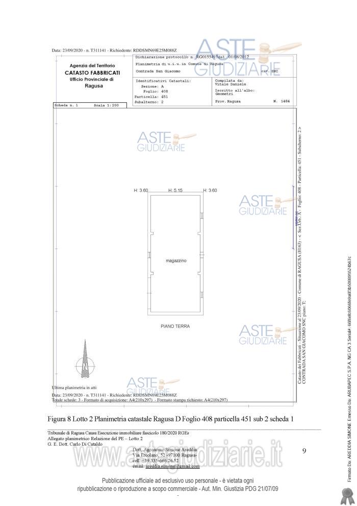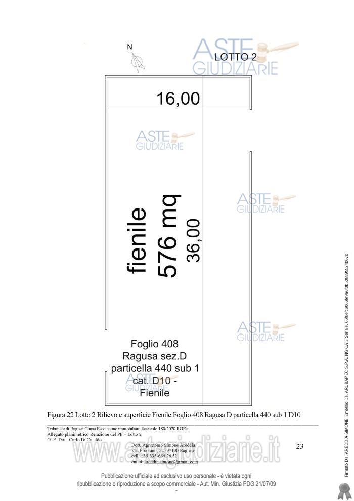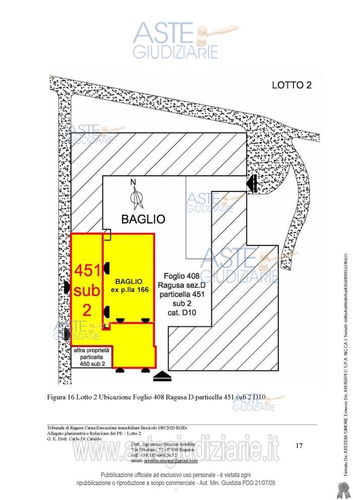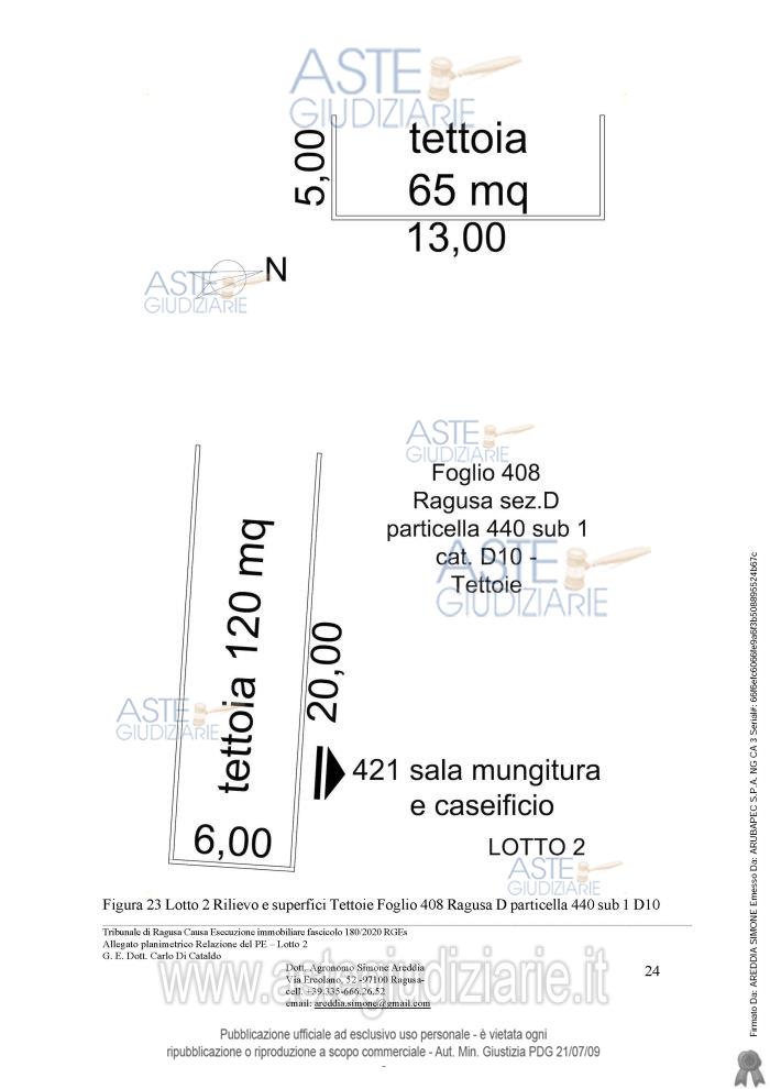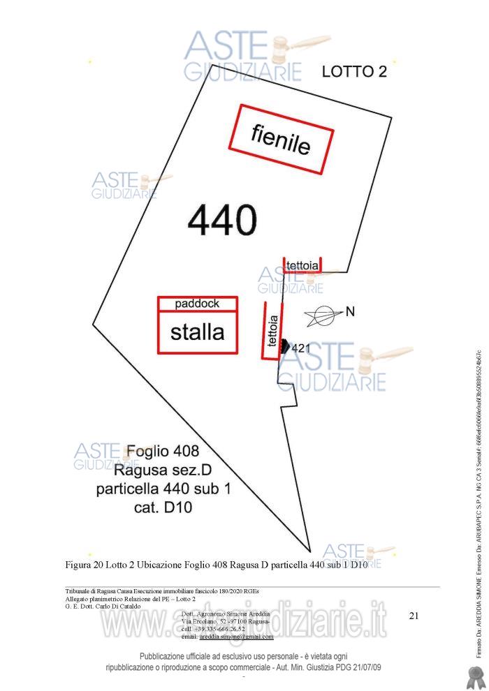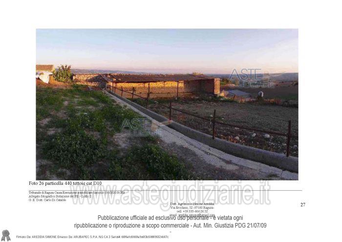 Vendita all'asta Senza incanto, con gara telematica sincrona mista - LOTTO 2: Appezzamenti di terreno contigui e fabbricati ad uso agricolo. Prezzo base € 21.752,92 (offerta minima € 13.314,69). Data vendita 13/01/2026 ore 16:30. Giudice Carlo Di Cataldo. Professionista delegato alla vendita Avv. Antonino Francone - Email "studiofrancone@gmail.com". Custode Giudiziario Avv. Antonino Francone - Email "studiofrancone@gmail.com"; Tel. 0932244190. Rif. Tribunale di Ragusa - Esecuzione immobiliare post legge 80 n. 180/2020