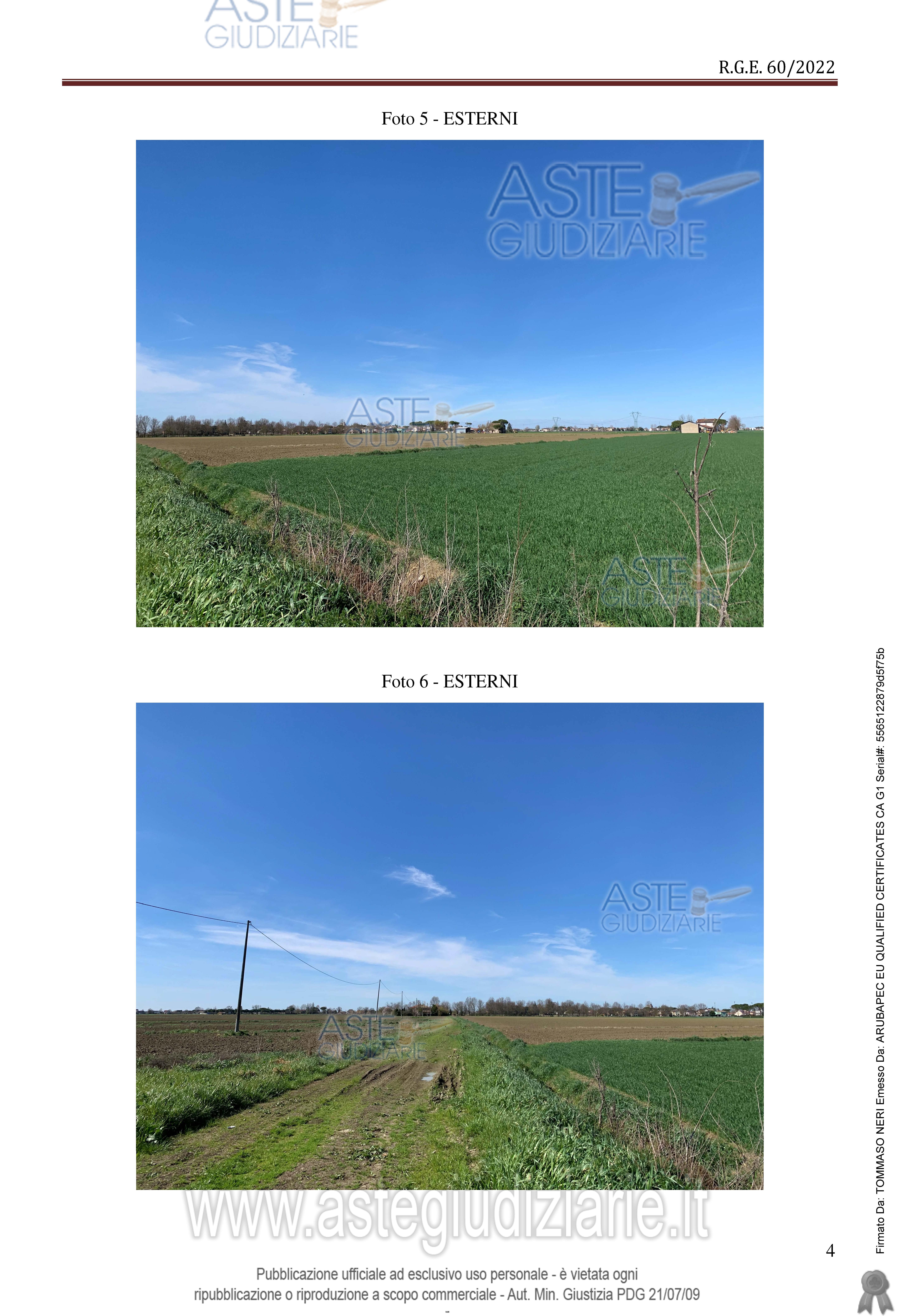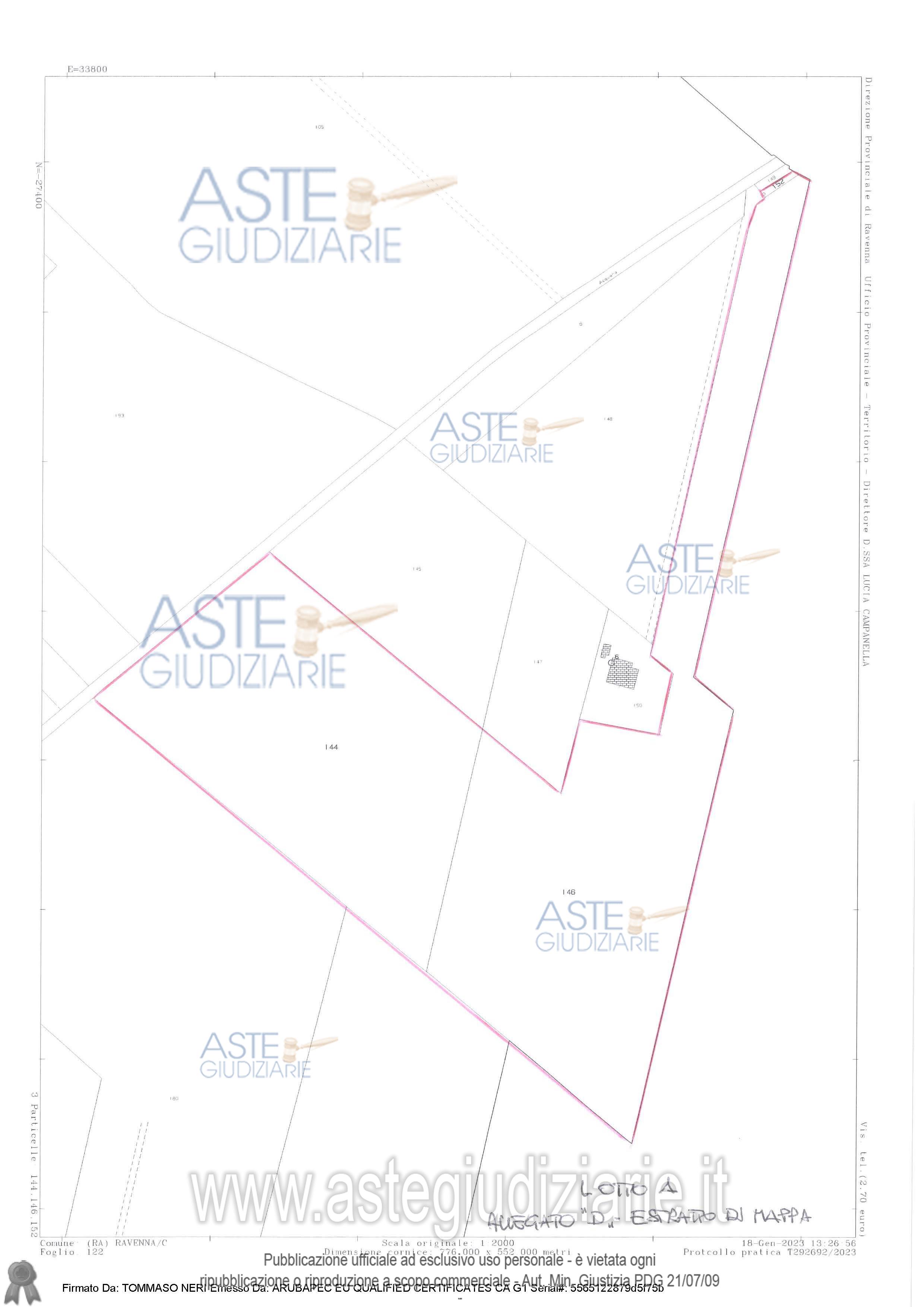 Vendita all'asta Senza incanto, con gara telematica asincrona - LOTTO 1: Compendio immobiliare composto da fondo agricolo costituito da aree di terreno privo di fabbricati. Terreni gestiti da soggetto terzo con autorizzazione del G.E. fino al termine della presente annata agraria (10.11.2026), ma liberi al decreto di trasferimento. Prezzo base € 369.750,00 (offerta minima € 277.312,50). Data inizio operazioni di vendita: 10/03/2026 ore 09:00. Giudice Samuele Labanca. Professionista delegato alla vendita Avv. Pantaleo Uva - Email "ape.esecuzioni@libero.it"; Tel. 054465970. Custode Giudiziario Avv. Pantaleo Uva - Email "ape.esecuzioni@libero.it"; Tel. 054465970. Rif. Tribunale di Ravenna - Esecuzione immobiliare post legge 80 n. 60/2022