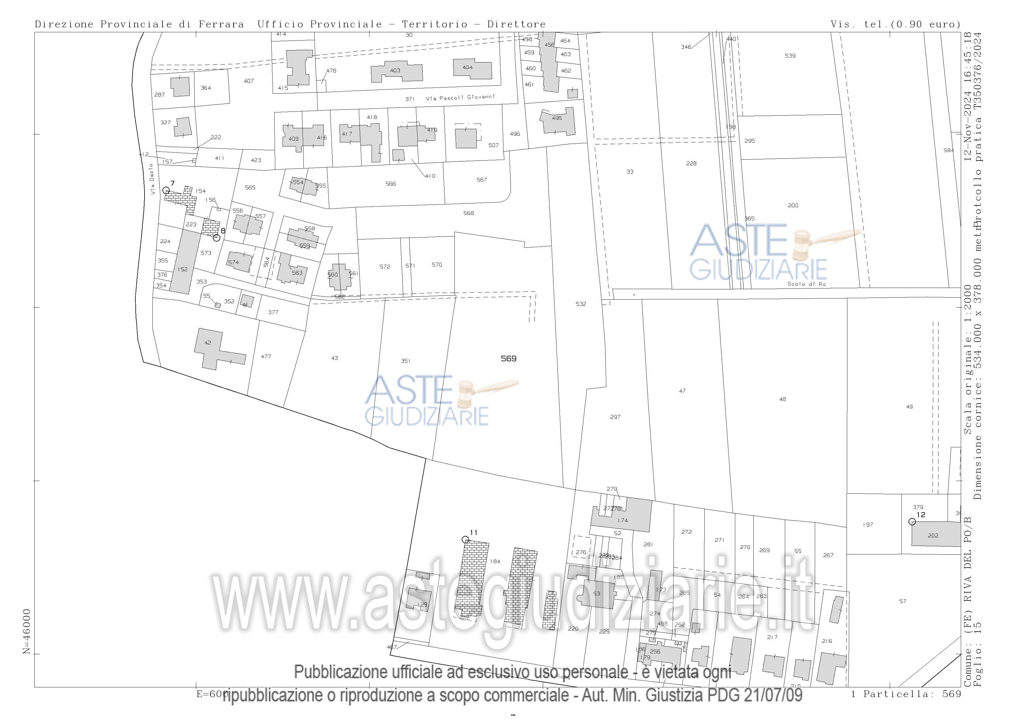 Vendita all'asta Senza incanto, con gara telematica asincrona - LOTTO UNICO: Full ownership rights on plots of land located in the Municipality of Riva del Po - Ro locality in the province of Ferrara, Agricultural Woodland quality. Prezzo base € 12.023,44 (offerta minima € 12.023,44). Data inizio operazioni di vendita: 29/04/2026 ore 12:00. In caso di più offerte valide si procederà a gara che inizierà il 29/04/2026 ore 12:00 e terminerà il 30/04/2026 ore 12:00. Giudice Dott. Andrea Barzellotti. Professionista delegato alla vendita Dott. Gennaro Coscia - Tel. 0766 501774. Curatore Dott. Gennaro Coscia. Rif. Tribunale di Civitavecchia - Liquidazione giudiziale(cci) n. 21/2024