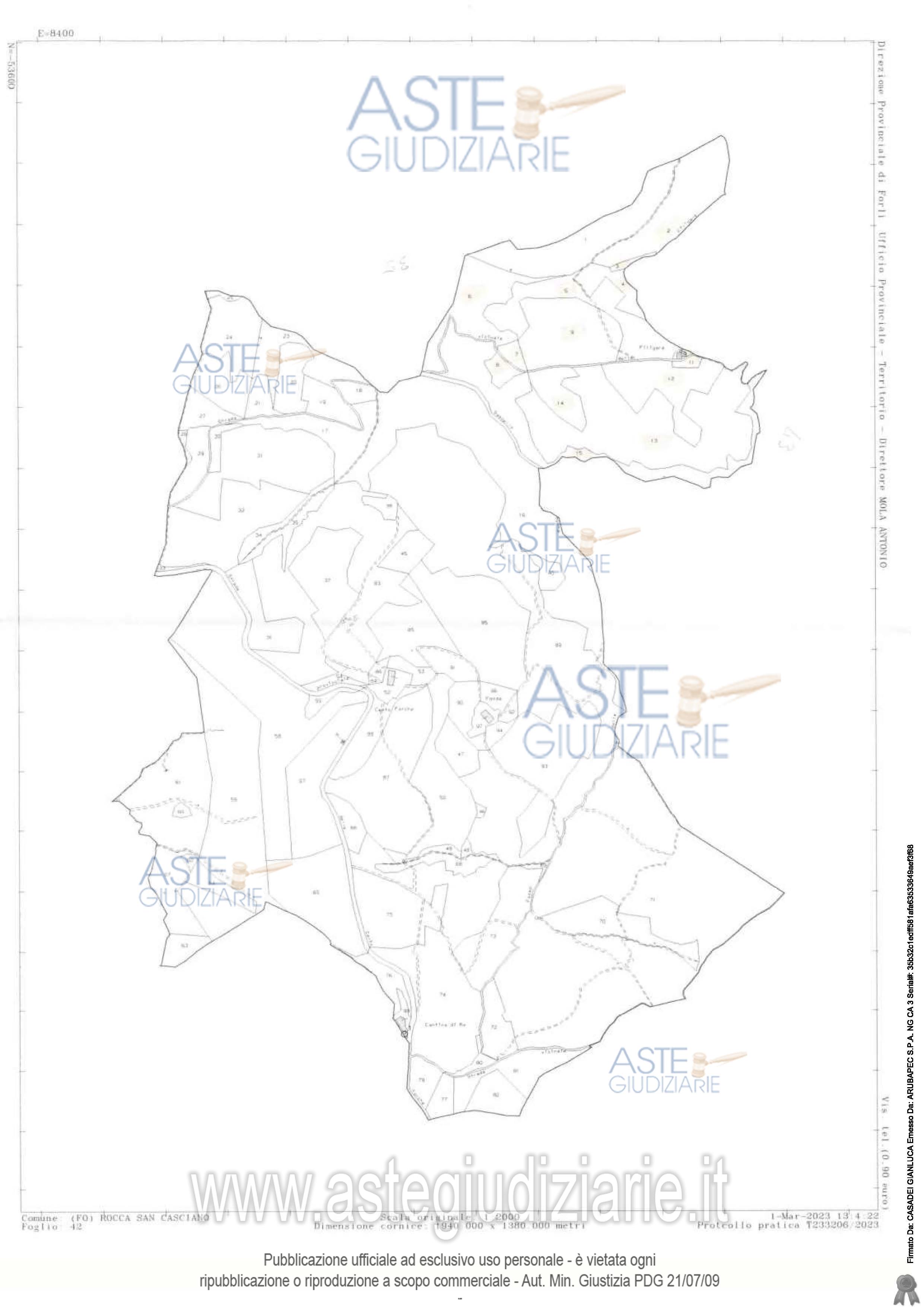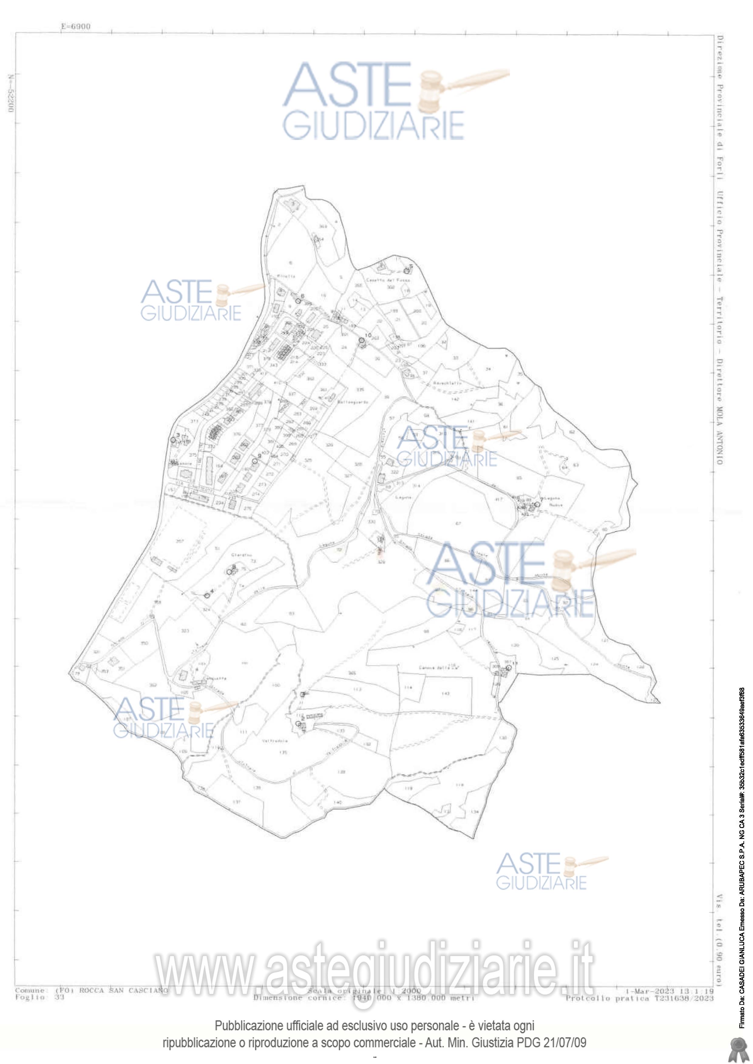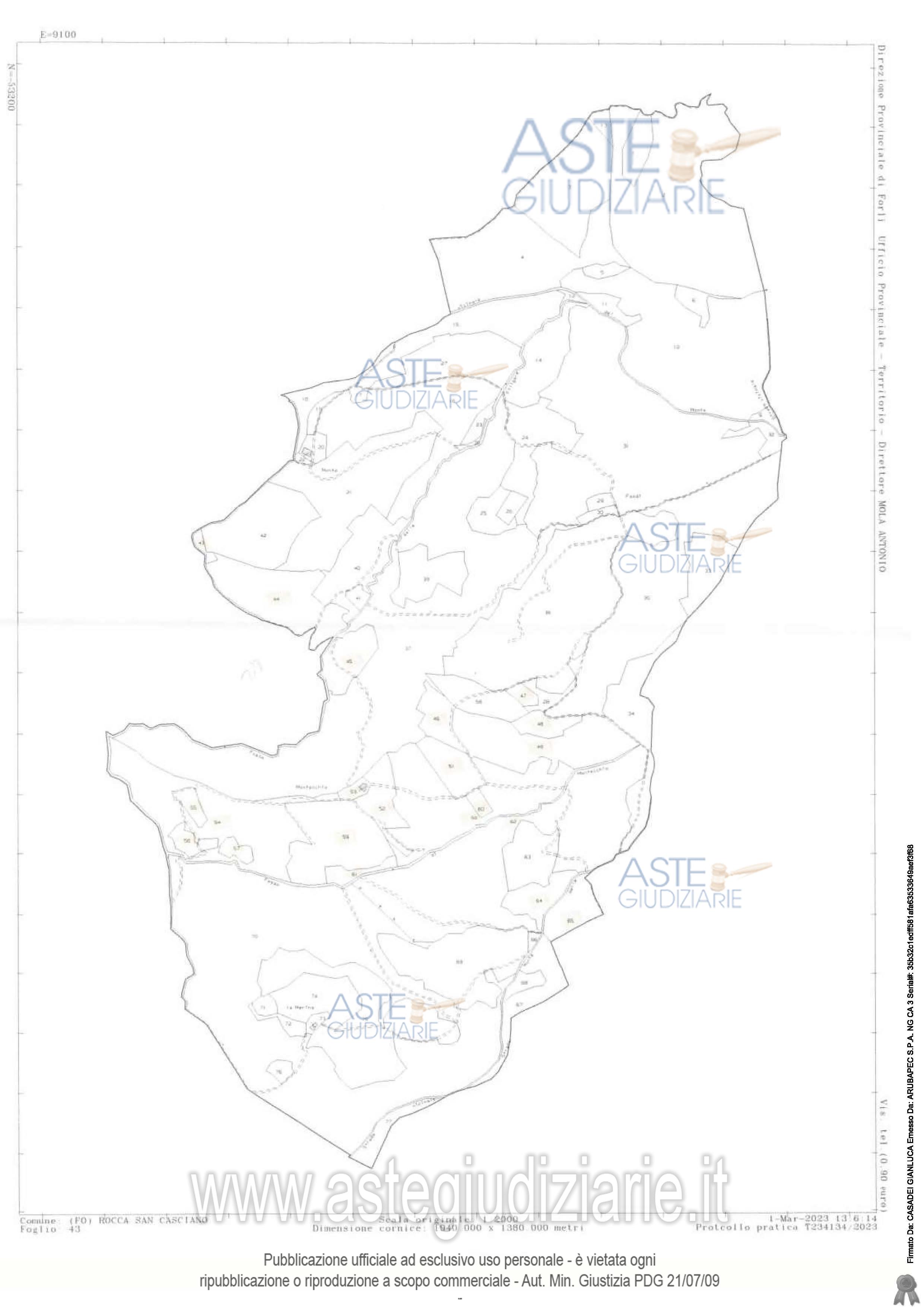 Vendita all'asta Senza incanto, con gara telematica asincrona - LOTTO 2: Piena proprietà di complesso di fondi rustici, con sovrastanti fabbricati collabenti - separati in più corpi e adibiti al servizio dei fondi con annesse corti. Il complesso immobiliare, della superficie complessiva di Ha. 73.39.86, è costituito da terreni di varia coltura, prevalentemente boschiva, con porzioni di seminativo e pascolo, e da cinque unità immobiliari collabenti, ed è accessibile tramite strade comunali e vicinali. Prezzo base € 148.166,25 (offerta minima € 111.124,69). Data inizio operazioni di vendita: 18/03/2026 ore 15:00. Giudice Fabio Santoro. Professionista delegato alla vendita Avv. Maddalena Degli Oddi - Email "maddalenadeglioddi@gmail.com"; Tel. 054328502. Custode Giudiziario Avv. Maddalena Degli Oddi - Email "maddalenadeglioddi@gmail.com"; Tel. 054328502. Rif. Tribunale di Forlì - Esecuzione immobiliare post legge 80 n. 124/2022