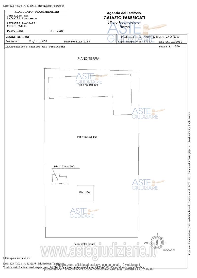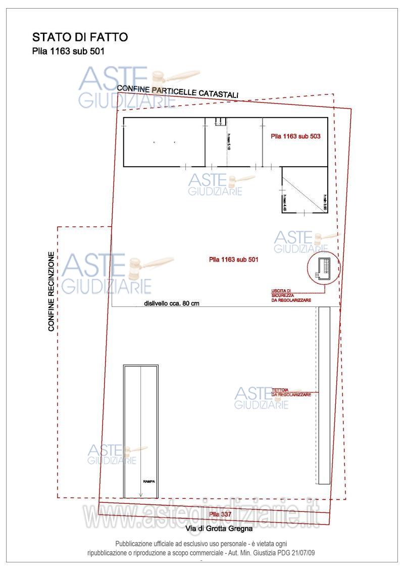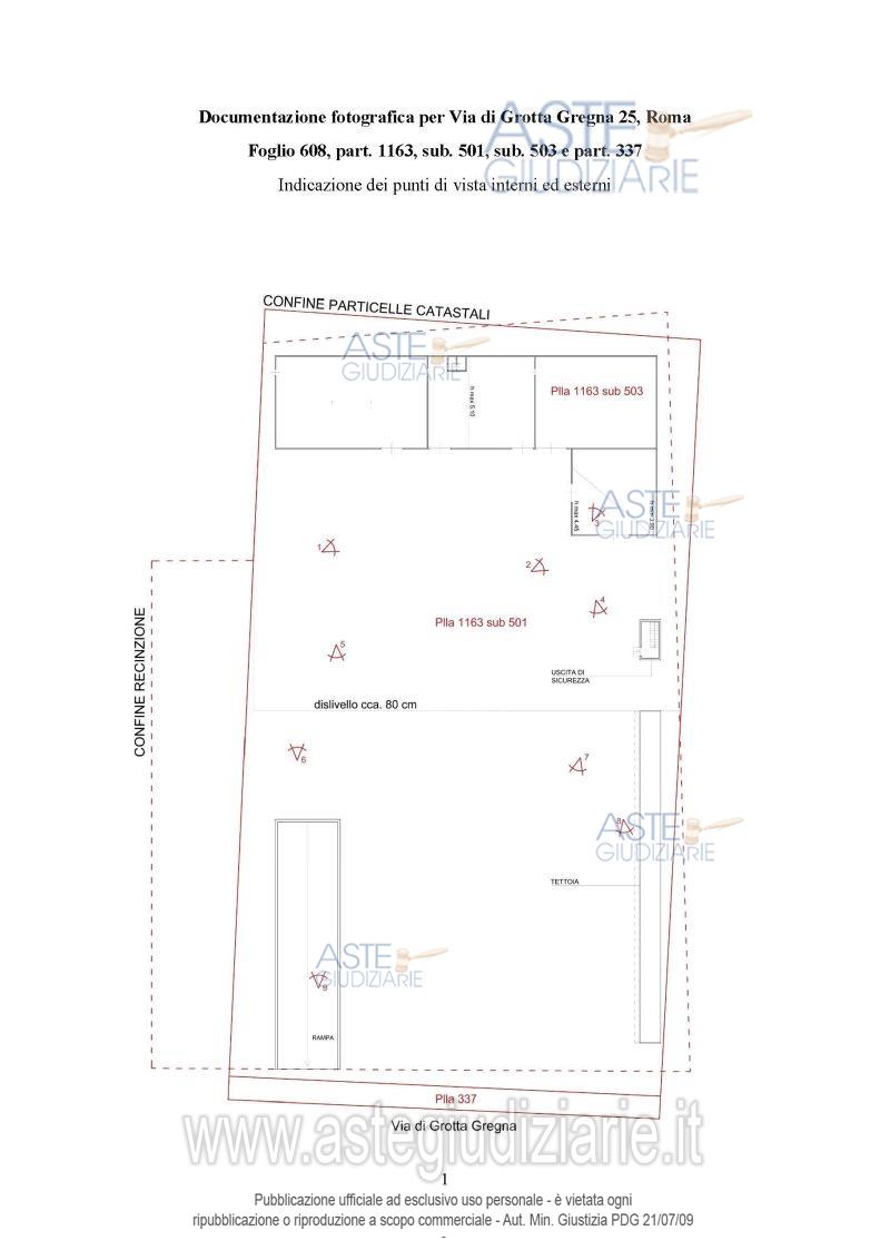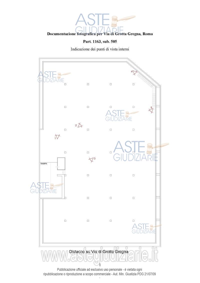 Vendita all'asta Senza incanto, con gara telematica asincrona - LOTTO UNICO: Quota pari ad 1/1 del diritto di piena proprietà su autorimessa interrata (catastalmente D/8) avente accesso tramite rampa carrabile dal piazzale, bene comune non censibile, sita in Roma (RM), Via di Grotta di Gregna n. 25A, piano S1, su magazzino (catastalmente D/8) sito in Roma (RM), via di Grotta di Gregna n. 25A, piano terra e su terreno adibito a piazzale asfaltato, in parte copertura di un immobile interrato realizzato ex Legge 122/89 "Tognoli", sito in Roma (RM), via di Grotta di Gregna n. 25A. Prezzo base € 1.254.691,60 (offerta minima € 941.018,70). Data inizio operazioni di vendita: 18/06/2026 ore 14:00. Giudice Dott. Giuseppe Lauropoli. Professionista delegato alla vendita Avv. Letizia Sdrubolini. Custode Giudiziario Ivg Di Roma Srl - Email "pvp@visiteivgroma.it"; Tel. 0689569801. Rif. Tribunale di Roma - Esecuzione immobiliare post legge 80 n. 89/2017