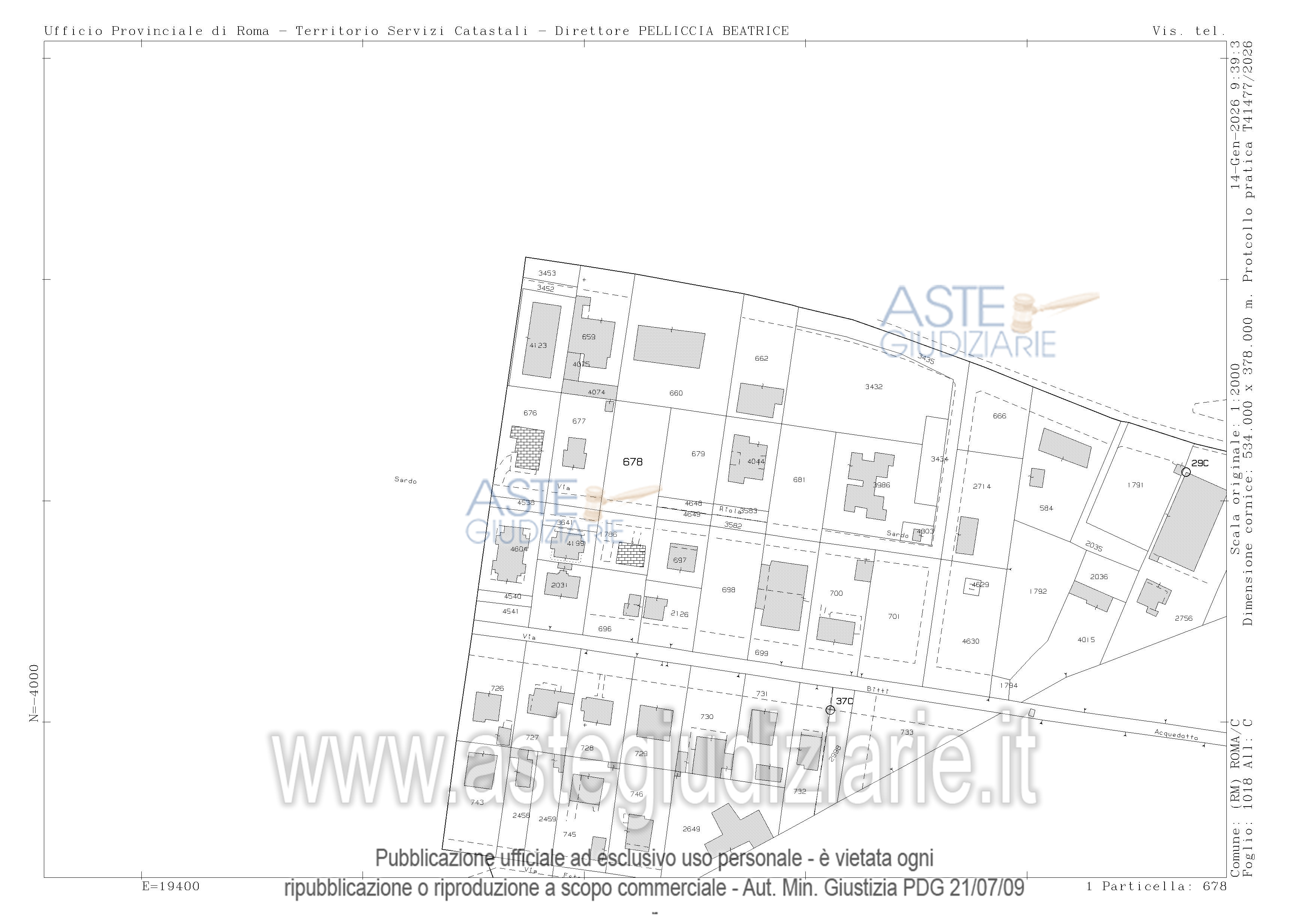 Vendita all'asta Senza incanto, con gara telematica asincrona - LOTTO 3: Fenced land with a modest unregistered structure on it, encumbered by an archaeological constraint. Prezzo base € 25.000,00 (offerta minima € 18.750,00). Data inizio operazioni di vendita: 20/05/2026 ore 10:30. Giudice Dott. Francesco Cottone. Custode Giudiziario Aste Giudiziarie Inlinea S.P.A. - Email "vendite@astegiudiziarie.it"; Tel. 0586 201480. Curatore Avv. Italia Trifilio. Rif. Tribunale di Roma - Fallimentare n. 44002/1986