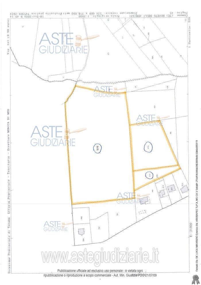 Vendita all'asta Senza incanto, con gara telematica asincrona - LOTTO UNICO: Il lotto è formato da seguenti beni: Bene N. 1 diritto di proprietà 1/1 su appezzamento di terreno agricolo, identificato al catasto Terreni, Fg. 45, Part. 212; Bene N. 2 diritto di proprietà 1/1 su appezzamento di terreno identificato al catasto Terreni, al Fg. 45, Part. 215; Bene N. 3 diritto di proprietà 1/1 su appezzamento di terreno agricolo identificato al catasto Terreni, Fg. 45, Part. 579 . Tutti i terreni di cui al lotto sono ubicati a Roseto Degli Abruzzi (TE), Contrada Giardino. Prezzo base € 84.000,00 (offerta minima € 63.000,00). Data inizio operazioni di vendita: 03/06/2026 ore 14:00. Professionista delegato alla vendita Avv. Francesca Di Matteo - Email "francesca.dimatteo@studio-dimatteo.it"; Cell. 3487931404; Tel. 0861712468. Custode Giudiziario Avv. Francesca Di Matteo - Email "francesca.dimatteo@studio-dimatteo.it"; Cell. 3487931404; Tel. 0861712468. Rif. Tribunale di Teramo - Espropriazione immobiliare (cartabia) n. 205/2023