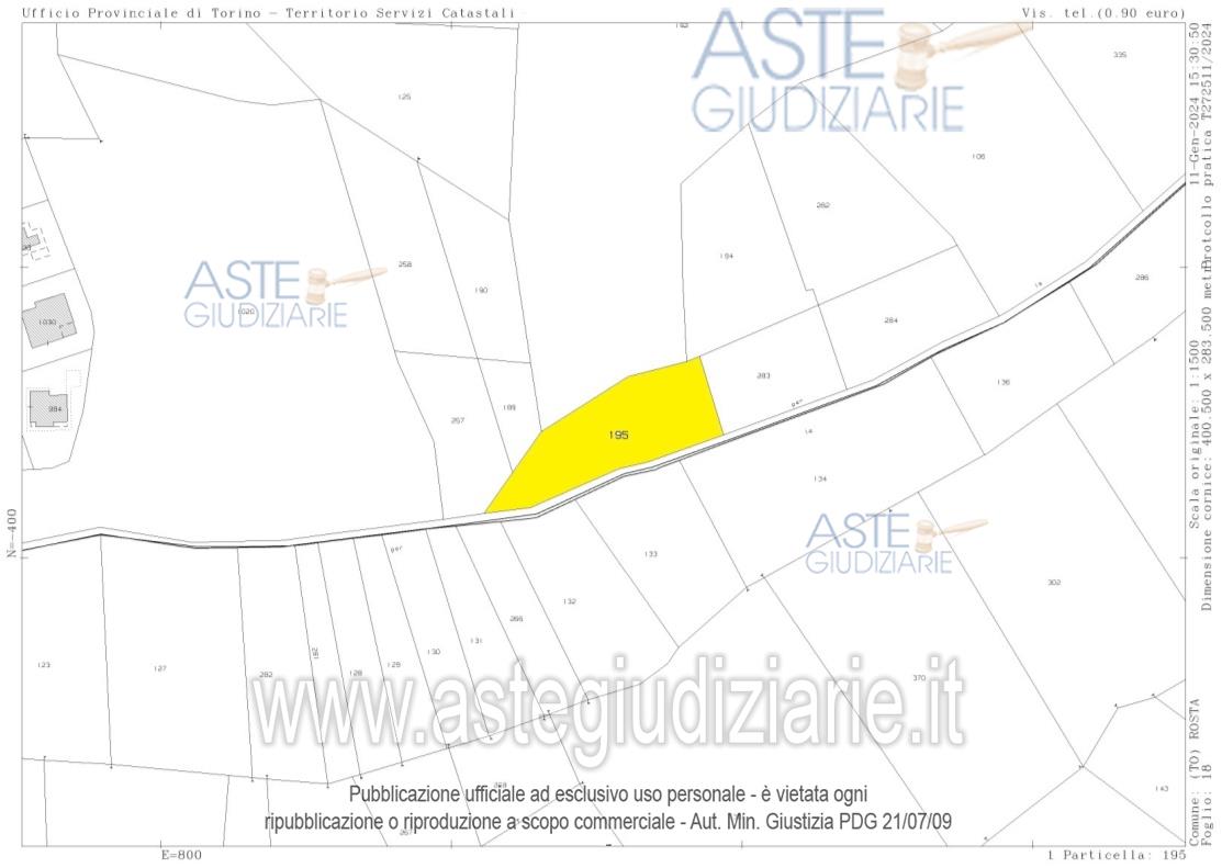 Vendita all'asta Senza incanto, con gara telematica asincrona - LOTTO 6: In Comune di Rosta, in area residenziale, piena proprietà di terreni della superficie catastale di complessivi mq. 5.627 distinti nella mappa C.T. al Foglio 19, particelle 17, 375, 378 e 381, formanti un sol corpo. Prezzo base € 5.000,00 (offerta minima € 3.750,00). Data inizio operazioni di vendita: 18/11/2025 ore 16:45. Giudice Elisabetta Duretto. Professionista delegato alla vendita Avv. Valentina Bari - Email "bari.lege@gmail.com"; Tel. 01119716947. Custode Giudiziario Avv. Valentina Bari - Email "valentinabariinfocustodia@591bis.com"; Cell. 3491021250. Rif. Tribunale di Torino - Espropriazione immobiliare (cartabia) n. 807/2023