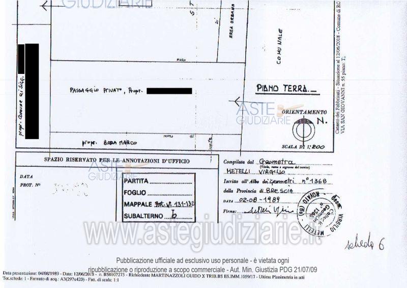 Vendita all'asta Senza incanto, con gara telematica asincrona - LOTTO 4: Trattasi di terreno seminativo irriguo di are 10,00, vicino a ex fabbricato agricolo. Portico di 56 mq di area e annessa area per orto. Inoltre la quarta parte della corte comune dell'ex fabbricato agricolo. - Quota di 1/4 di fabbricato rurale. Competono le proporzionali quote delle parti comuni. Prezzo base € 9.468,46 (offerta minima € 7.101,35). Data inizio operazioni di vendita: 24/03/2026 ore 10:30. Professionista delegato alla vendita Not. Gianni Tufano. Custode Giudiziario Dott. Istituto Vendite Giudiziarie Di Brescia Soccov Srl - Email "ivgvisitebs@gmail.com"; Tel. 030348410. Rif. Tribunale di Brescia - Esecuzione immobiliare post legge 80 n. 1059/2017