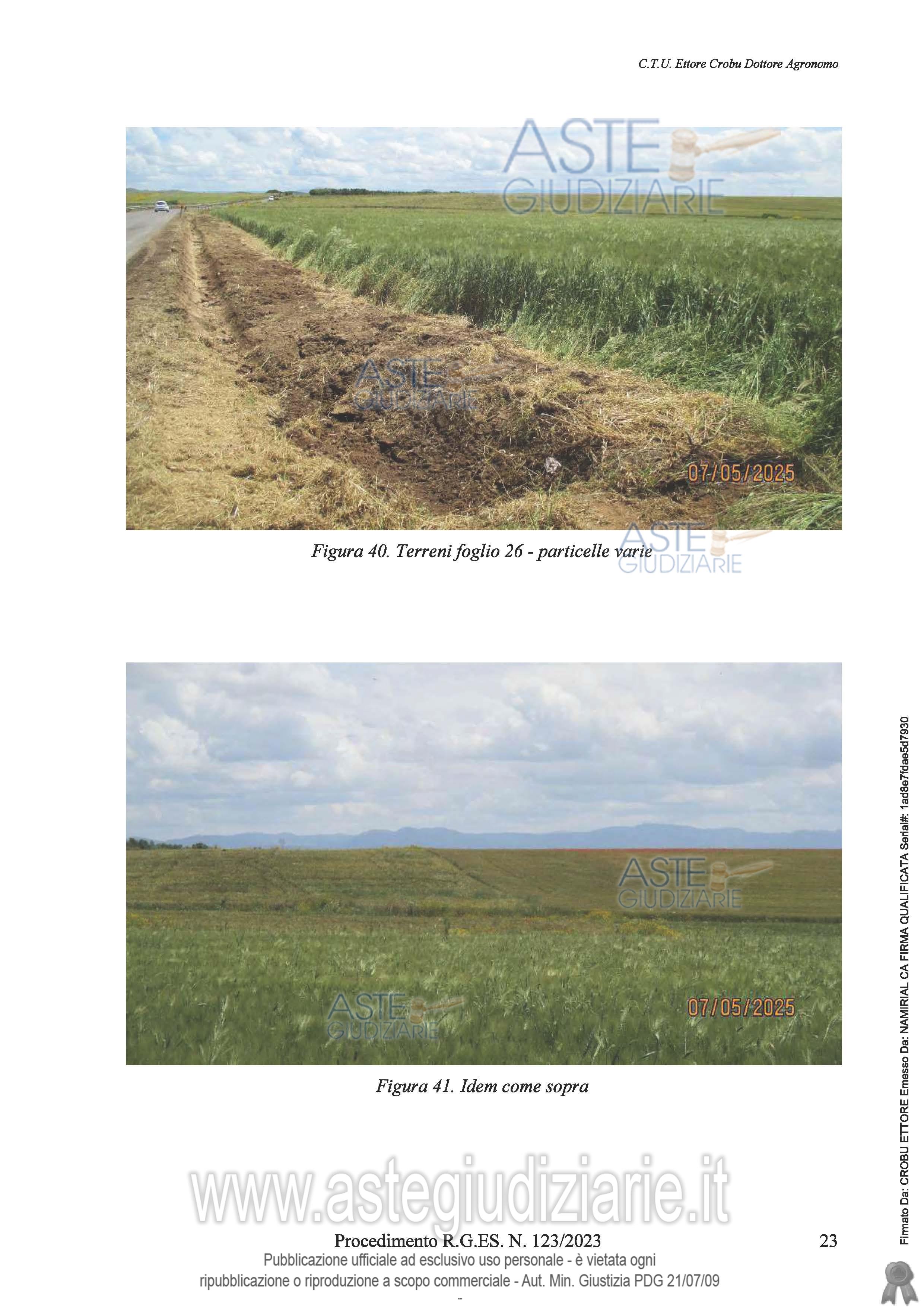Vendita all'asta Senza incanto, con gara telematica asincrona - LOTTO 2: cinque appezzamenti di terreno agricolo, in parte contigui tra loro, della superficie catastale complessiva di 10.219 . Prezzo base € 15.300,00 (offerta minima € 11.475,00). Data inizio operazioni di vendita: 05/05/2026 ore 10:30. Professionista delegato alla vendita Avv. Barbara Tripepi - Email "btripepi@tiscali.it"; Cell. 3517155575. Custode Giudiziario Ivg Cagliari - Email "ivg.visiteimmobili@tiscali.it"; Tel. 0702299036. Rif. Tribunale di Cagliari - Espropriazione immobiliare (cartabia) n. 123/2023