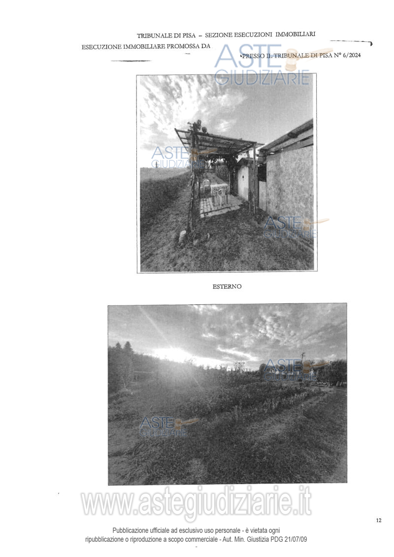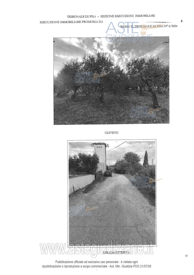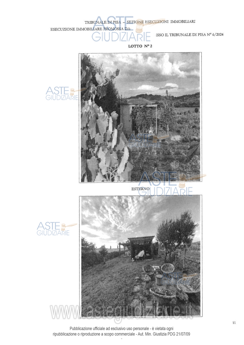 Vendita all'asta Senza incanto, con gara telematica asincrona - LOTTO 2: Piena proprietà di terreno agricolo di mq 118 e area urbana di mq 28, costituenti porzione di strada vicinale. Piena proprietà per la quota di 1/2 di area urbana di mq 48, anch’essa porzione della medesima strada. Piena proprietà di terreno agricolo di mq 1.860, in leggero declivio, forma regolare, attualmente coltivato. Accesso da strada vicinale con diritto di passo. Prezzo base € 18.900,00 (offerta minima € 14.175,00). Data inizio operazioni di vendita: 20/05/2026 ore 17:00. Professionista delegato alla vendita Dott. Rachele Bellesi - Email "rachele.bellesi@studiocavaliere.com"; Tel. 0571366093. Custode Giudiziario Cosimo Erriquez - Email "prenotazionipisa@astagiudiziaria.com"; Tel. 050554790. Rif. Tribunale di Pisa - Espropriazione immobiliare (cartabia) n. 6/2024
