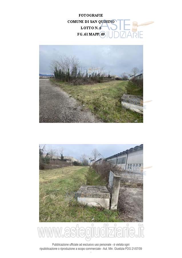 Vendita all'asta Senza incanto, con gara telematica sincrona mista - LOTTO 6: LOTTO SESTO: Terreno a forma rettangolare ricade in zona omogenea D - sottozona D2. Libero. Prezzo base € 16.769,54 (offerta minima € 12.577,16). Data vendita 10/02/2026 ore 15:00. Giudice Dott. Antonio Albenzio. Professionista delegato alla vendita Not. Orazio Greco - Email "ogreco@notariato.it". Custode Giudiziario Ass. Not. Associazione Notarile - Email "custodi@associazionenotarile.pn.it"; Tel. 3294536349. Rif. Tribunale di Pordenone - Espropriazione immobiliare (cartabia) n. 46/2023