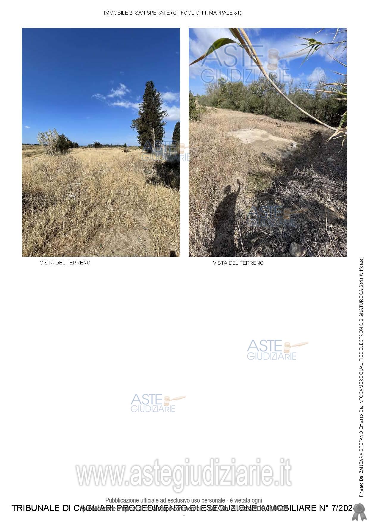 Vendita all'asta Senza incanto, con gara telematica asincrona - LOTTO 2: Quota pari all’intero del diritto di proprietà ( 1/1) sul TERRENO sito in agro di San Sperate distinto in Catasto Terreni del Comune di San Sperate (SU) al foglio 11, particella 81, Porz. AA, Qualità classe SEMINATIVO, superficie are 30 ca 04, Reddito dominicale Euro 6,21, Reddito Agrario Euro 3,88; Porz. AB Qualità classe PESCHETO, superficie ha 1, are19, ca 00, Reddito Dominicale Euro 73,75; Reddito Agrario Euro 52,24. Prezzo base € 40.000,00 (offerta minima € 30.000,00). Data inizio operazioni di vendita: 13/01/2026 ore 15:00. Giudice Dott. Valentina Frongia. Professionista delegato alla vendita Avv. Loredana Boi - Email "info@studiolegaleboi.it"; Tel. 07015247039. Custode Giudiziario Ivg Cagliari - Email "ivg.visiteimmobili@tiscali.it"; Tel. 0702299036. Rif. Tribunale di Cagliari - Espropriazione immobiliare (cartabia) n. 7/2024