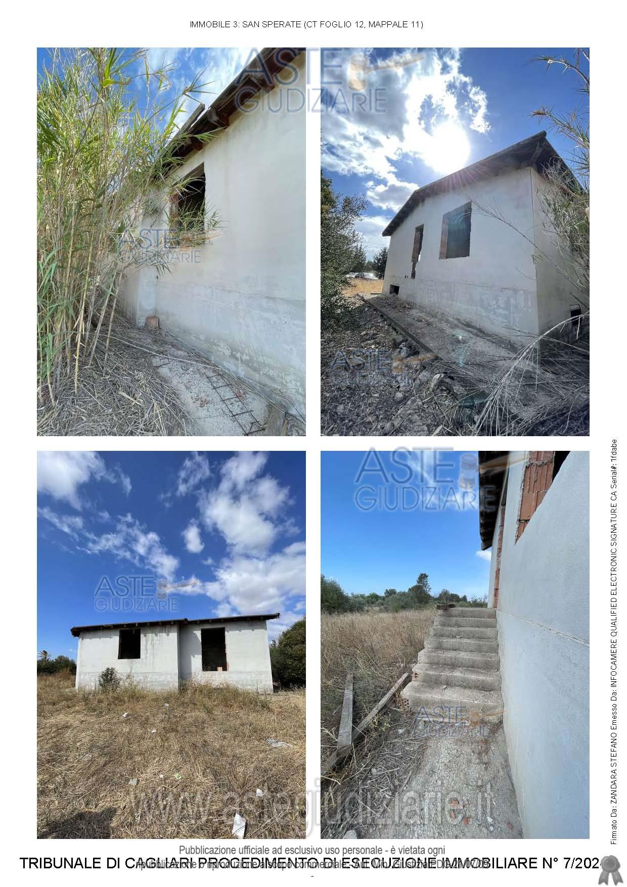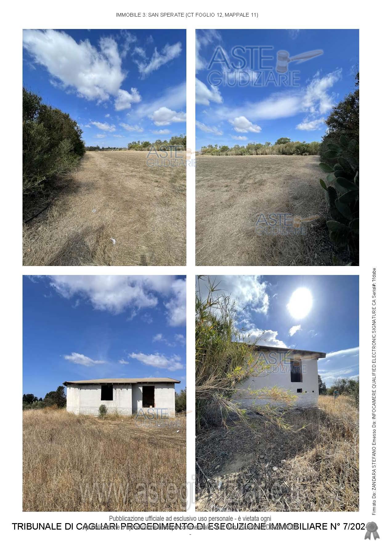 Vendita all'asta Senza incanto, con gara telematica asincrona - LOTTO 3: Quota pari all’intero del diritto di proprietà ( 1/1) sul TERRENO sito in agro di San Sperate distinto in Catasto Terreni del Comune di San Sperate (SU) al foglio 12 , particella 11, Qualità SEMINATIVO Classe 1, Superficie: are 73, ca 70; Reddito dominicale : Euro 36,16, Reddito Agrario Euro 13,32. Al centro del terreno é presente un fabbricato al grezzo. Prezzo base € 53.312,00 (offerta minima € 39.984,00). Data inizio operazioni di vendita: 05/05/2026 ore 15:00. Giudice Valentina Frongia. Professionista delegato alla vendita Avv. Loredana Boi - Email "info@studiolegaleboi.it"; Tel. 07015247039. Custode Giudiziario Ivg Cagliari - Email "ivg.visiteimmobili@tiscali.it"; Tel. 0702299036. Rif. Tribunale di Cagliari - Espropriazione immobiliare (cartabia) n. 7/2024