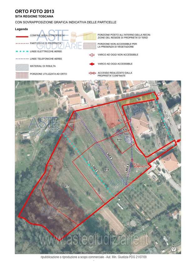 Vendita all'asta Senza incanto, con gara telematica sincrona mista - LOTTO 5: Terreno con particelle, in parte edificabili, che si sviluppano per una superficie complessiva di 8.302 mq. Prezzo base € 37.650,00 (offerta minima € 28.237,50). Data vendita 17/12/2025 ore 15:00. Giudice Dott. Rosa Selvarolo. Professionista delegato alla vendita Dott. Alessandro Torcini - Email "torcini@dottoricommercialisti.it". Custode Giudiziario Dott. Andrea Mantelli - Email "mantelli@dottoricommercialisti.it"; Tel. 057172755. Curatore Dott. Gaia Ceccherini - Email "gaia.ceccherini@gmail.com"; Tel. 0558336295. Rif. Tribunale di Firenze - Fallimentare (nuovo rito) n. 76/2017