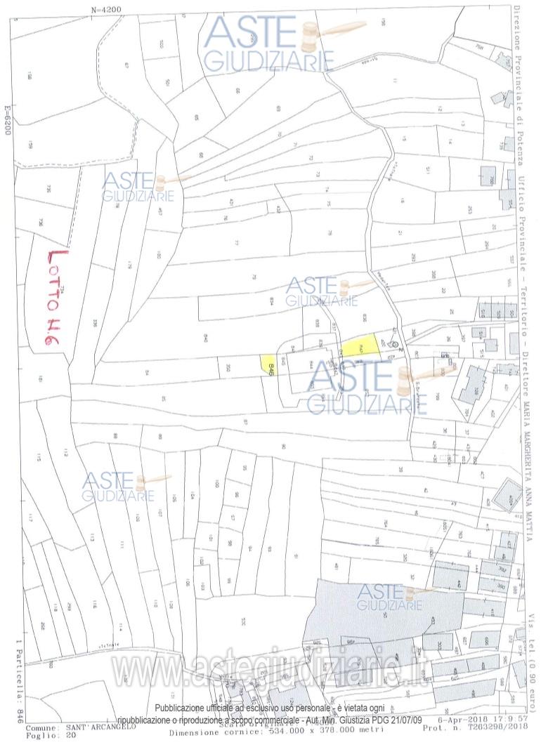 Vendita all'asta Senza incanto, con gara telematica asincrona - LOTTO 6: LOTTO SEI - BENI P) Q) - Piena proprietà di terreni, censiti al Catasto Terreni e ricadenti nel Comune di Sant’Arcangelo (PZ). Strutturato da beni p) q). BENE P: Seminativo di 3.a classe di are 01.49. BENE Q: Seminativo di 3.a classe di are 01.77. Prezzo base € 500,00 (offerta minima € 375,00). Data inizio operazioni di vendita: 27/04/2026 ore 11:30. Professionista delegato alla vendita Dott. Tommaso Nigro - Email "studionigroeboli@gmail.com"; Tel. 0828308262. Custode Giudiziario Dott. Tommaso Nigro - Email "studionigroeboli@gmail.com"; Tel. 0828308262. Rif. Tribunale di Lagonegro - Esecuzione immobiliare post legge 80 n. 18/2011