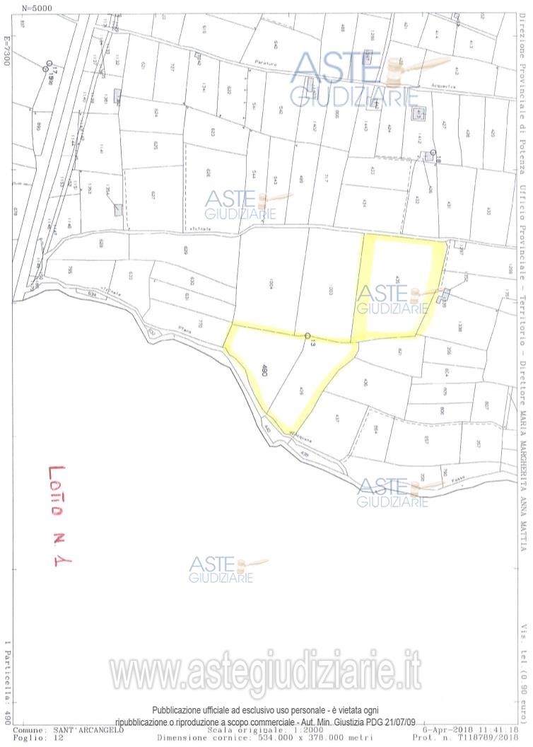 Vendita all'asta Senza incanto, con gara telematica asincrona - LOTTO 1: LOTTO UNO - BENI A) e B) - Piena proprietà di terreni, censiti al Catasto Terreni e ricadenti nel Comune di Sant’Arcangelo (PZ). Strutturato da beni a) b). BENE A: Fondo di complessive are 43.69 costituito da: Frutteto irriguo di 2.a classe di are 05.69. BENE B: Uliveto di 2.a classe di are 21.77 con sovrastante stalla per ovini in corso di costruzione di mq. 112,00 e concimaia di mq. 27,00 non censiti ed accatastati al N.C.E.U. Prezzo base € 24.900,00 (offerta minima € 18.675,00). Data inizio operazioni di vendita: 27/04/2026 ore 11:30. Professionista delegato alla vendita Dott. Tommaso Nigro - Email "studionigroeboli@gmail.com"; Tel. 0828308262. Custode Giudiziario Dott. Tommaso Nigro - Email "studionigroeboli@gmail.com"; Tel. 0828308262. Rif. Tribunale di Lagonegro - Esecuzione immobiliare post legge 80 n. 18/2011