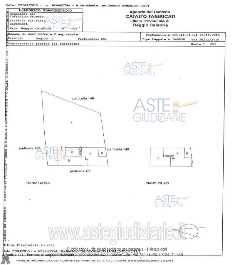 Vendita all'asta Senza incanto, con gara telematica asincrona - LOTTO 3: Trattasi di un lotto composto da tre particelle confinanti tra di loro, ubicato nelComune di Sant’Eufemia d’Aspromonte (RC) in contrada Badia. Le particelle sono identificate come segue: Catasto Terreni al foglio 4, p.lla 716, N.C.E.U. al foglio 4, p.lla 651 sub 6 e p.lla 717, sub 2, 3, 4, 5 e 6. Al lotto si arriva percorrendo la Strada Statale 112 direzione sud. D. Prezzo base € 10.147,00 (offerta minima € 7.610,00). Data inizio operazioni di vendita: 10/04/2026 ore 17:00. Giudice Dott. Marta Caineri. Professionista delegato alla vendita Dott. Cipriano Scarfo - Email "studioscarfo@libero.it"; Tel. 0966645153. Custode Giudiziario Dott. Cipriano Scarfo - Email "studioscarfo@libero.it"; Tel. 3939518232. Rif. Tribunale di Palmi - Esecuzione immobiliare post legge 80 n. 91/2014