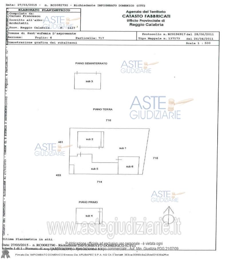 Vendita all'asta Senza incanto, con gara telematica asincrona - LOTTO 3: Trattasi di un lotto composto da tre particelle confinanti tra di loro, ubicato nelComune di Sant’Eufemia d’Aspromonte (RC) in contrada Badia. Le particelle sono identificate come segue: Catasto Terreni al foglio 4, p.lla 716, N.C.E.U. al foglio 4, p.lla 651 sub 6 e p.lla 717, sub 2, 3, 4, 5 e 6. Al lotto si arriva percorrendo la Strada Statale 112 direzione sud. D. Prezzo base € 12.684,00 (offerta minima € 9.153,00). Data inizio operazioni di vendita: 05/12/2025 ore 16:00. Giudice Dott. Marta Caineri. Professionista delegato alla vendita Dott. Cipriano Scarfo - Email "studioscarfo@libero.it"; Tel. 0966645153. Custode Giudiziario Dott. Cipriano Scarfo - Email "studioscarfo@libero.it"; Tel. 3939518232. Rif. Tribunale di Palmi - Esecuzione immobiliare post legge 80 n. 91/2014