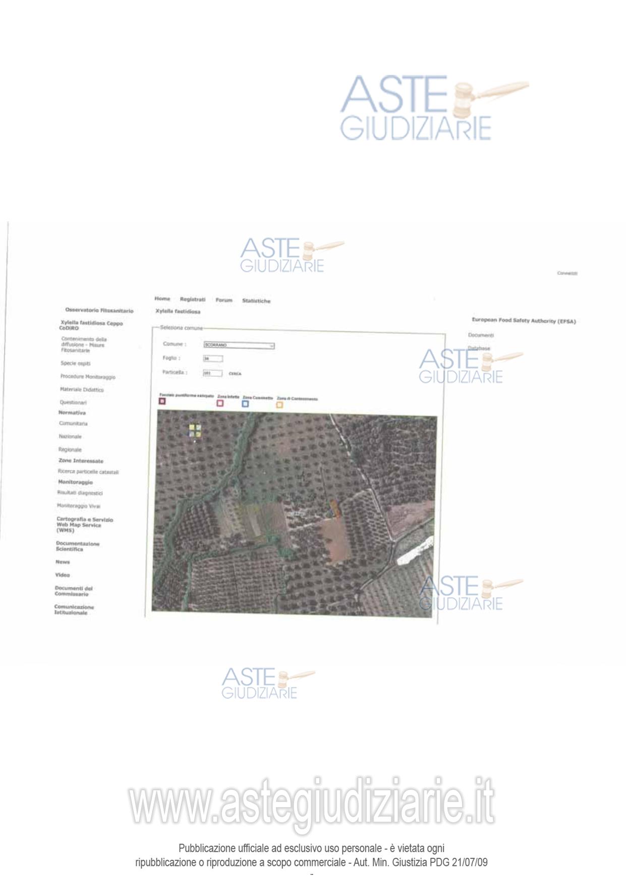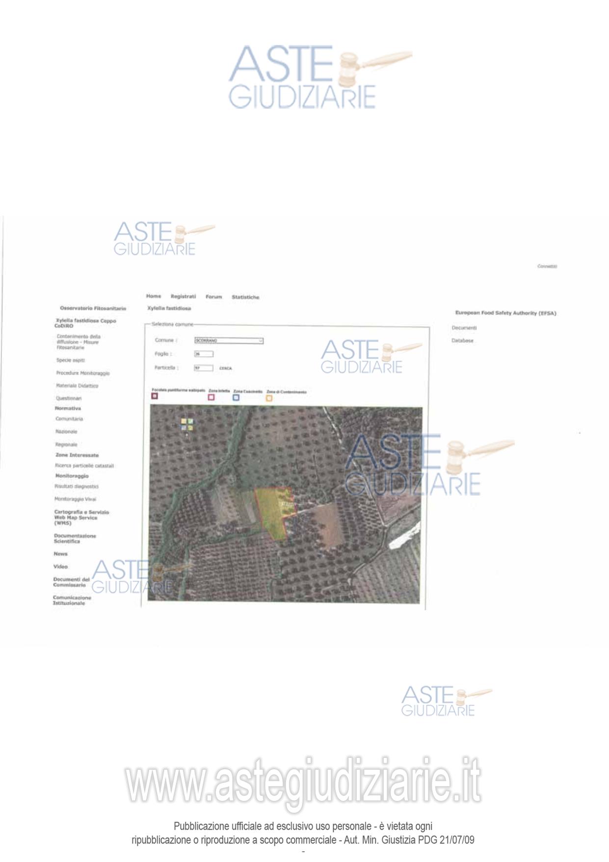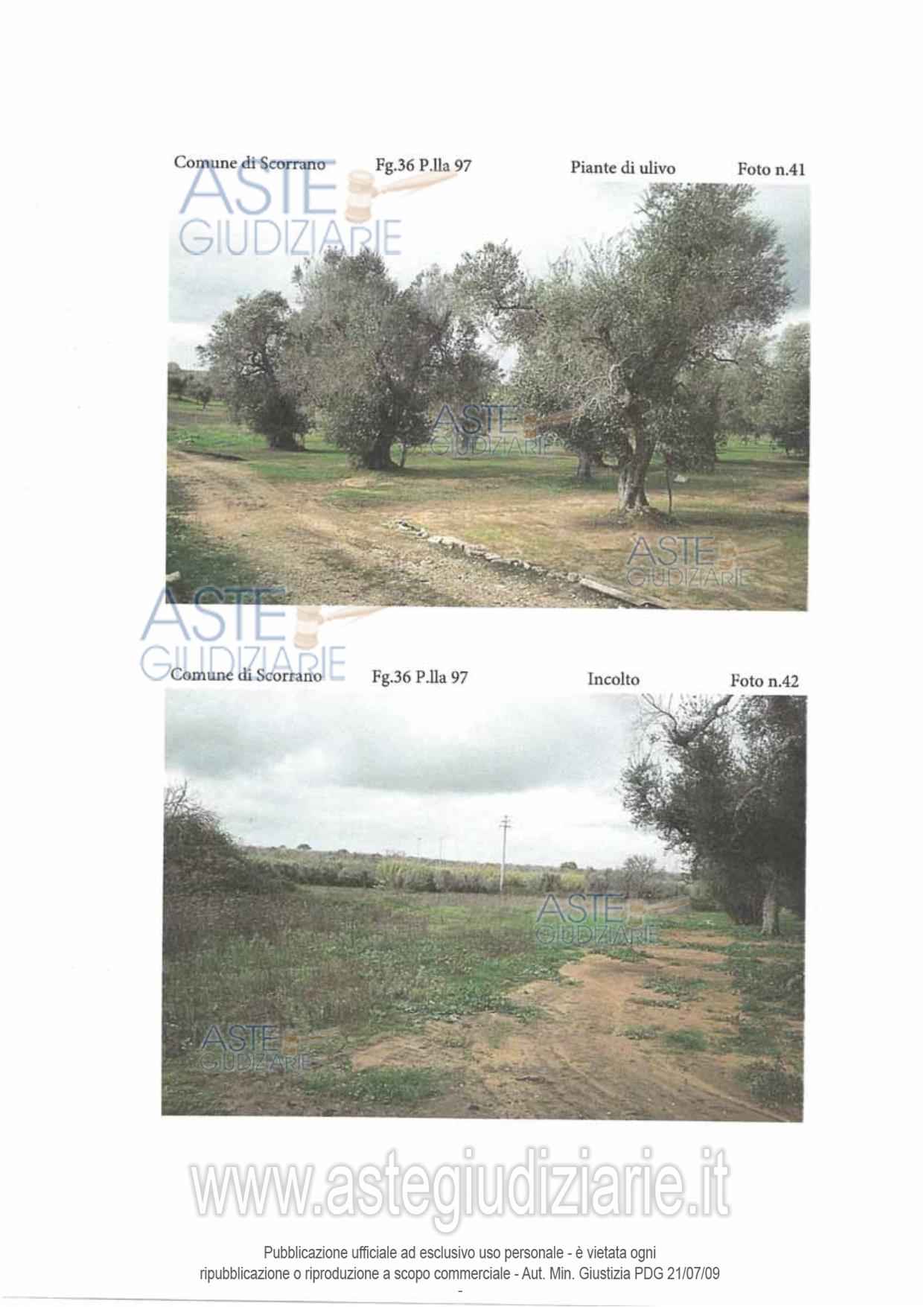 Vendita all'asta Senza incanto, con gara telematica asincrona - LOTTO 7: Piena proprietà per la quota di 1/1 di terreno agricolo (A) sito in Scorrano (Le) ad Ovest della Masseria Tresca, al quale si giunge percorrendo la S.P.308 daBotrugno. Il terreno misura una superficie di are 38.15. Parte del soprassuolo è investito da piante di olivo dell'apparente età compresa tra i 70 e i 90 anni, le piante disposte in sesto regolare. Il terreno (B) misura una superficie complessiva di are 01.90. Il soprassuolo è completamente investito da vegetazione spontanea. Prezzo base € 593,62 (offerta minima € 445,21). Data inizio operazioni di vendita: 15/12/2025 ore 10:00. Professionista delegato alla vendita Dott. Maurizio Renna - Email "STUDIO@FRCONSULTING.EU"; Cell. 3396364634; Tel. 0832314140. Custode Giudiziario Dott. Maurizio Renna - Email "STUDIO@FRCONSULTING.EU"; Cell. 3396364634; Tel. 0832314140. Rif. Tribunale di Lecce - Esecuzione immobiliare post legge 80 n. 106/2017