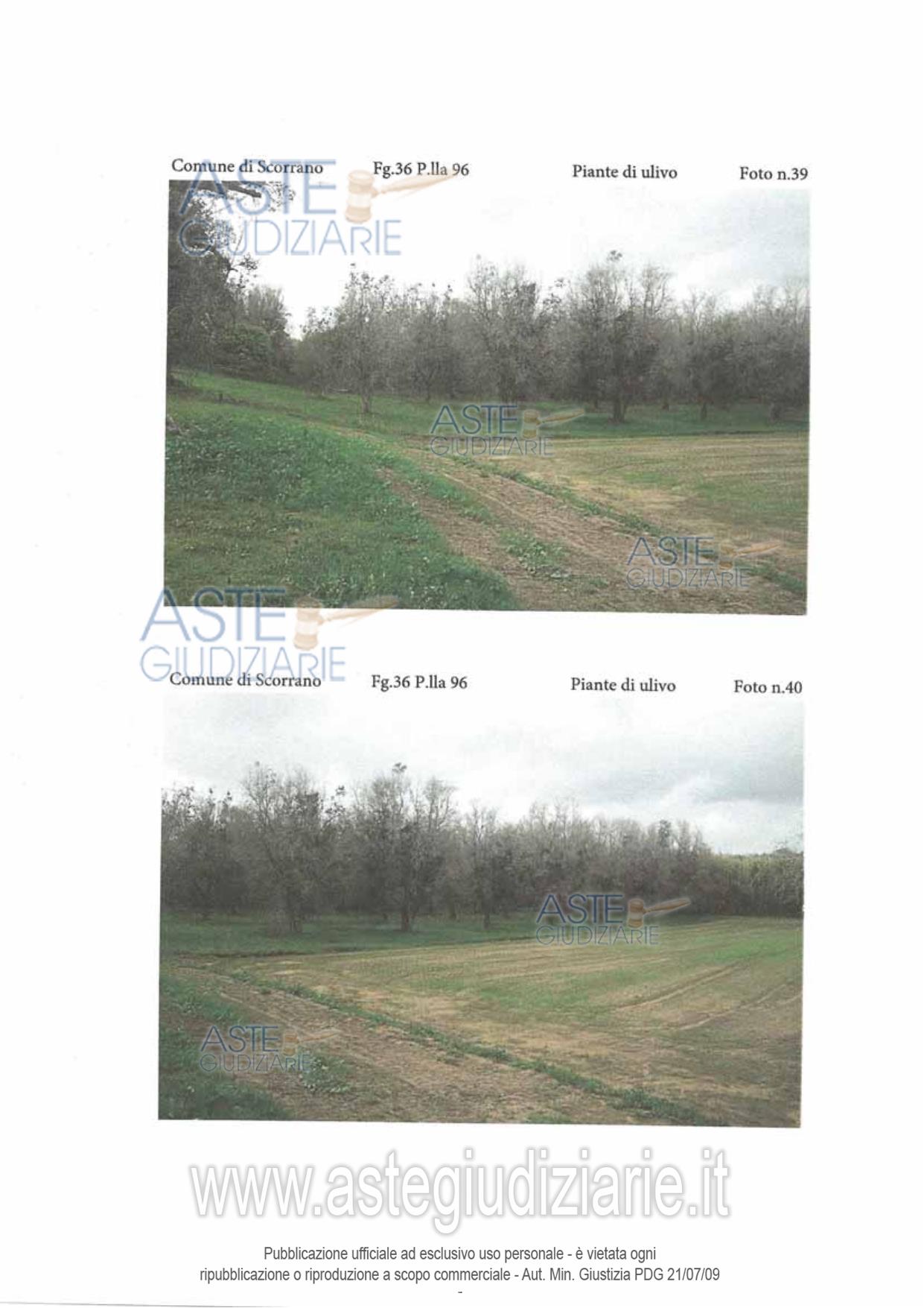 Vendita in attesa dell'emissione del nuovo bando d'asta. LOTTO 6: Piena proprietà per la quota di 1/1 di terreno agricolo sito in Scorrano ad Ovest della Masseria Tresca, al quale si giunge percorrendo da Botrugno la S.P.308. Il terreno misura una superficie di are 33.40. Sul terreno sono presenti piante di olivo dell'apparente età compresa tra i 50 e i 60 anni, le piante disposte in sesto regolare. Il terreno ricade in Zona E/6 verde agricolo. Ultimo prezzo base € 641,25 (offerta minima € 480,93). Professionista delegato alla vendita Dott. Maurizio Renna - Email "STUDIO@FRCONSULTING.EU"; Cell. 3396364634; Tel. 0832314140. Custode Giudiziario Dott. Maurizio Renna - Email "STUDIO@FRCONSULTING.EU"; Cell. 3396364634; Tel. 0832314140. Rif. Tribunale di Lecce - Esecuzione immobiliare post legge 80 n. 106/2017