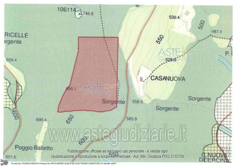Vendita all'asta Senza incanto, con gara telematica sincrona - LOTTO 31: - Terreno boschivo di mq 81.020 di forma trapezoidale con accesso dalla strada vicinale della Buca della Neve- Terreno boschivo di mq.720 di forma rettangolare su cui insiste una strada, con acces. Prezzo base € 147.132,00 (offerta minima € 110.349,00). Data vendita 19/03/2026 ore 16:00. Giudice Francesca Romana Bisegna. Professionista delegato alla vendita Dott. Riccardo Forgeschi - Email "forgeschi@scfc.it". Custode Giudiziario Isveg Srl Istituto Vendite Giudiziarie Srl - Email "prenota.fi@isveg.it". Rif. Tribunale di Firenze - Esecuzione immobiliare post legge 80 n. 213/2019