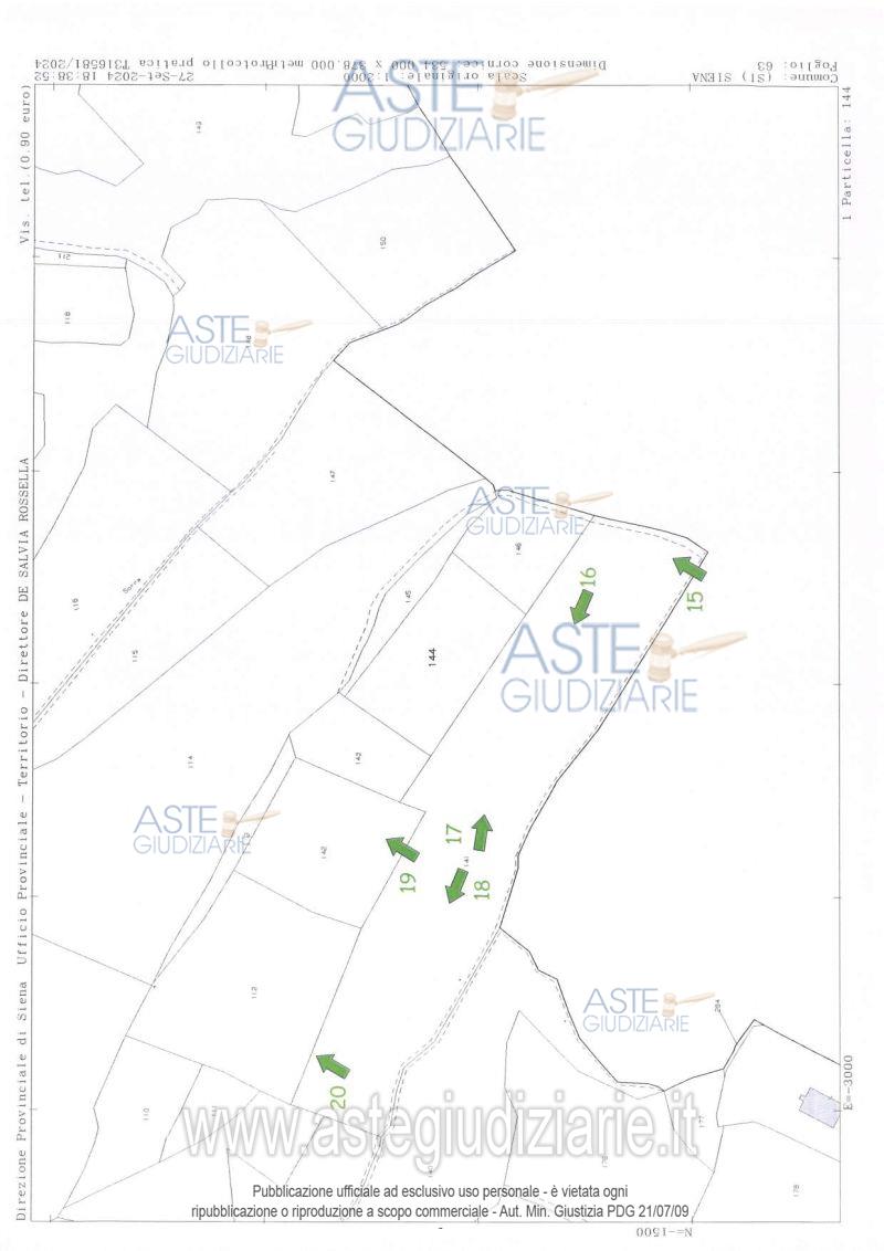 Vendita all'asta Senza incanto, con gara telematica asincrona - LOTTO 2: Appezzamento di terreno posto in Siena – località La Piana - Strada di Terrensano e Belcaro circostante ai fabbricati descritti al lotto precedente, ad uso agricolo in unico corpo. Prezzo base € 105.000,00 (offerta minima € 79.000,00). Data inizio operazioni di vendita: 02/04/2026 ore 14:30. Giudice Dott. Marta Dell'unto. Professionista delegato alla vendita Dott. Claudio Antonelli - Email "claudioantonelli.studio@gmail.com"; Tel. 0577285247. Custode Giudiziario Istituto Vendite Giudiziarie Per I Tribunali Di Arezzo E Siena - Email "visite@giustiziaivg.it"; Cell. 3397337017; Tel. 0577318111. Rif. Tribunale di Siena - Espropriazione immobiliare (cartabia) n. 71/2023