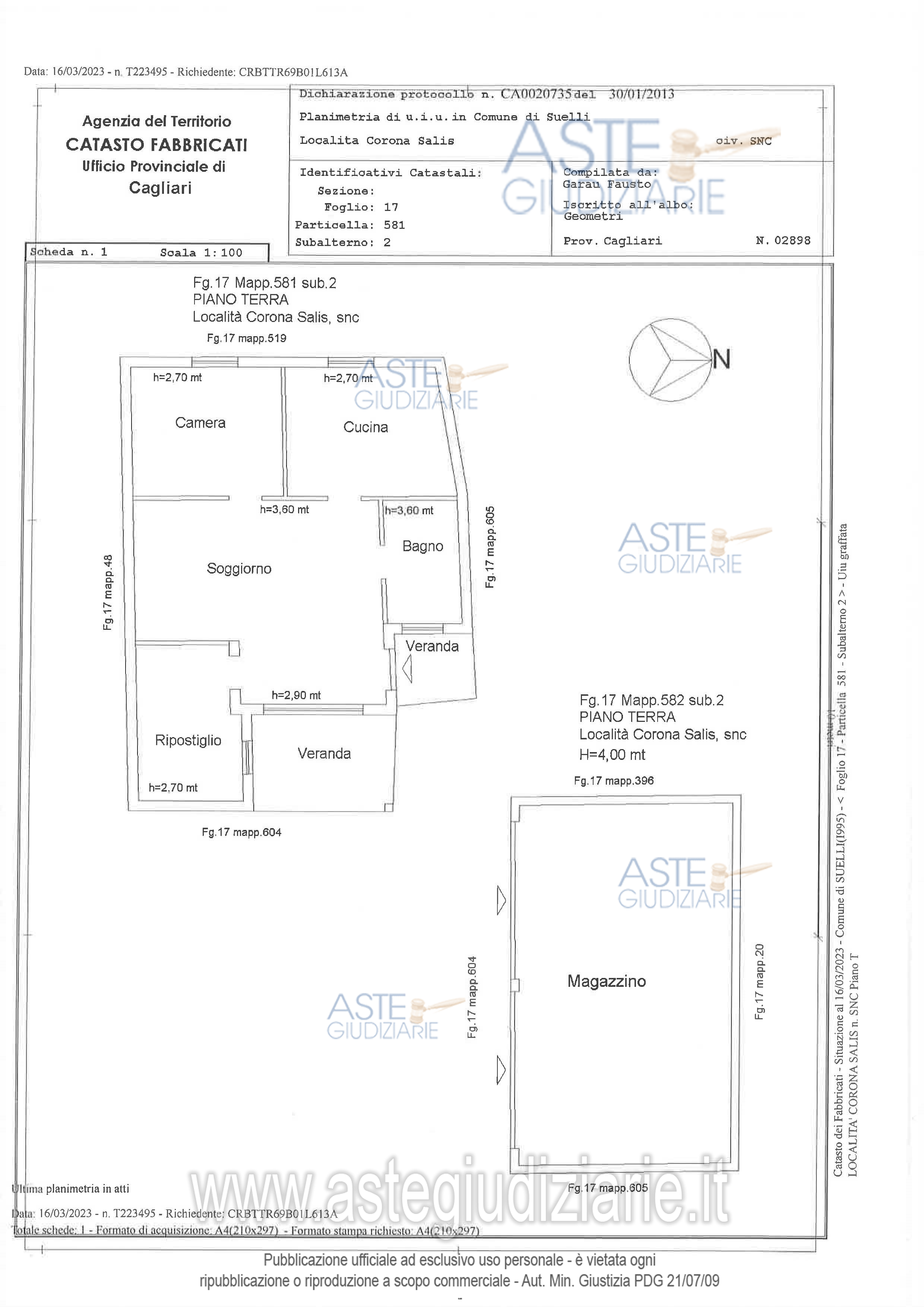 Vendita all'asta Senza incanto, con gara telematica asincrona - LOTTO UNICO: Quota pari all’intero del diritto di proprietà sull’azienda agricola ad indirizzo floro-vivaistica per mq.9810, con insistenti N.2 serre in ferro-vetro, N.4 ombrai, una cabina ricovero pompe, un fabbricato contenente cella frigo e cella germinazione, una cisterna, un fabbricato composto da locale rimessa e magazzino, soggiorno, camera, bagno, cucina, veranda, ripostigli. Prezzo base € 32.400,00 (offerta minima € 24.300,00). Data inizio operazioni di vendita: 17/12/2025 ore 09:00. Giudice Francesco De Giorgi. Professionista delegato alla vendita Not. Giovanni Gorini - Email "ufficiouniconotai@pec.it"; Tel. 07060222574. Custode Giudiziario Ivg Cagliari - Email "ivg.visiteimmobili@tiscali.it"; Tel. 0702299036. Rif. Tribunale di Cagliari - Esecuzione immobiliari n. 587/1998