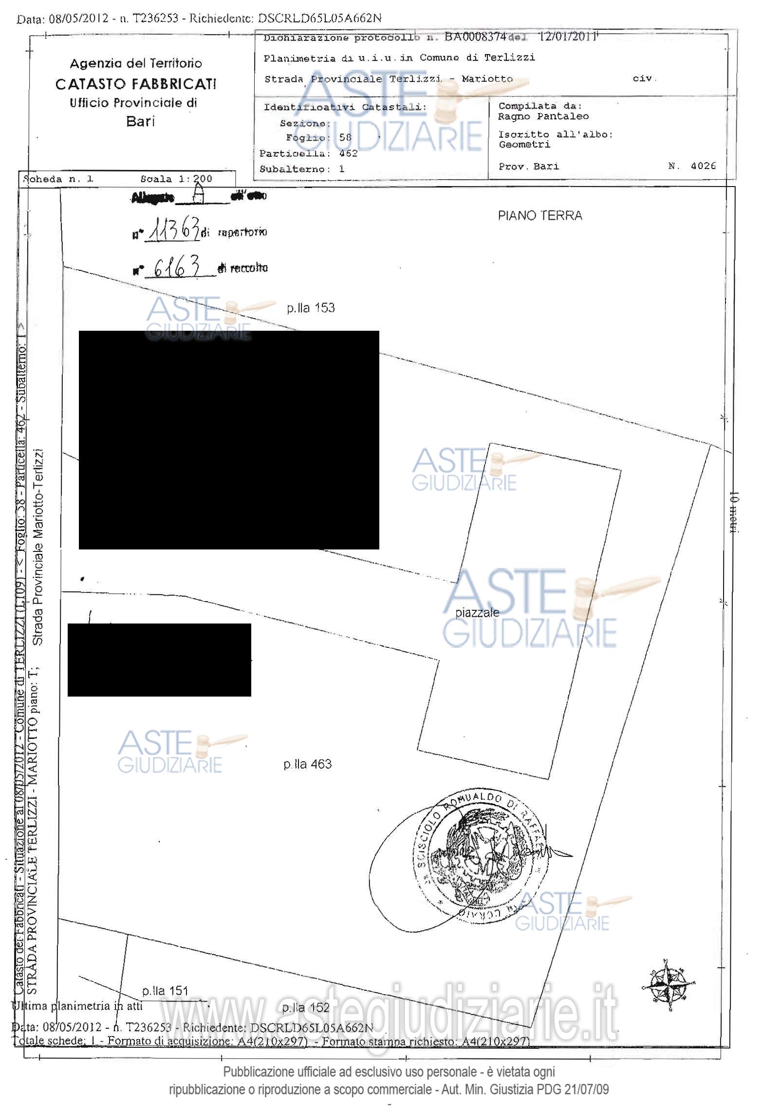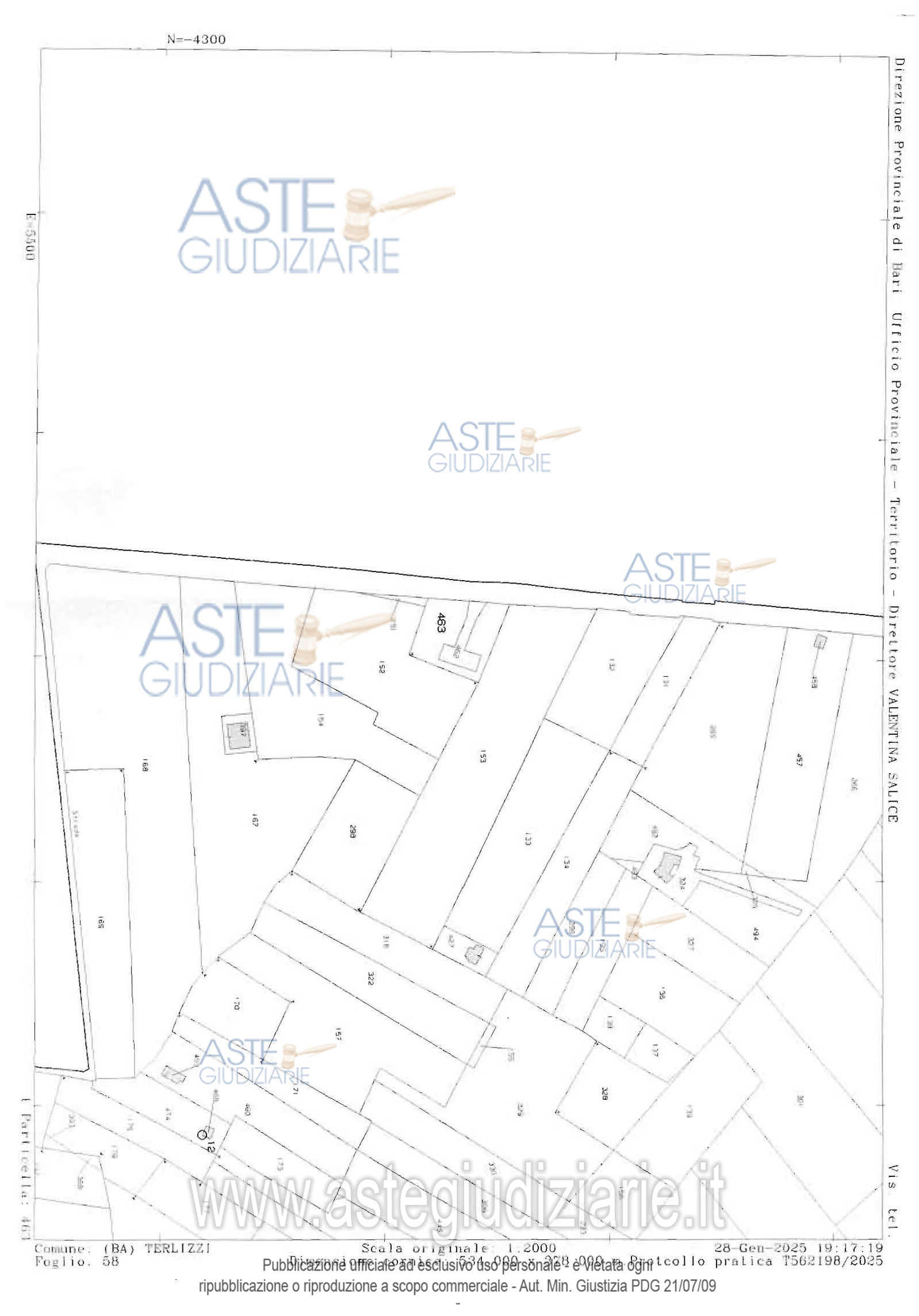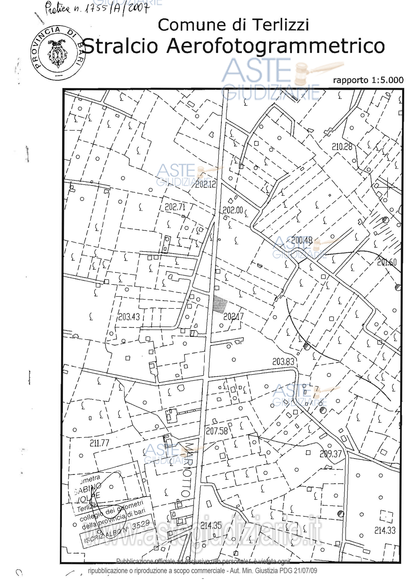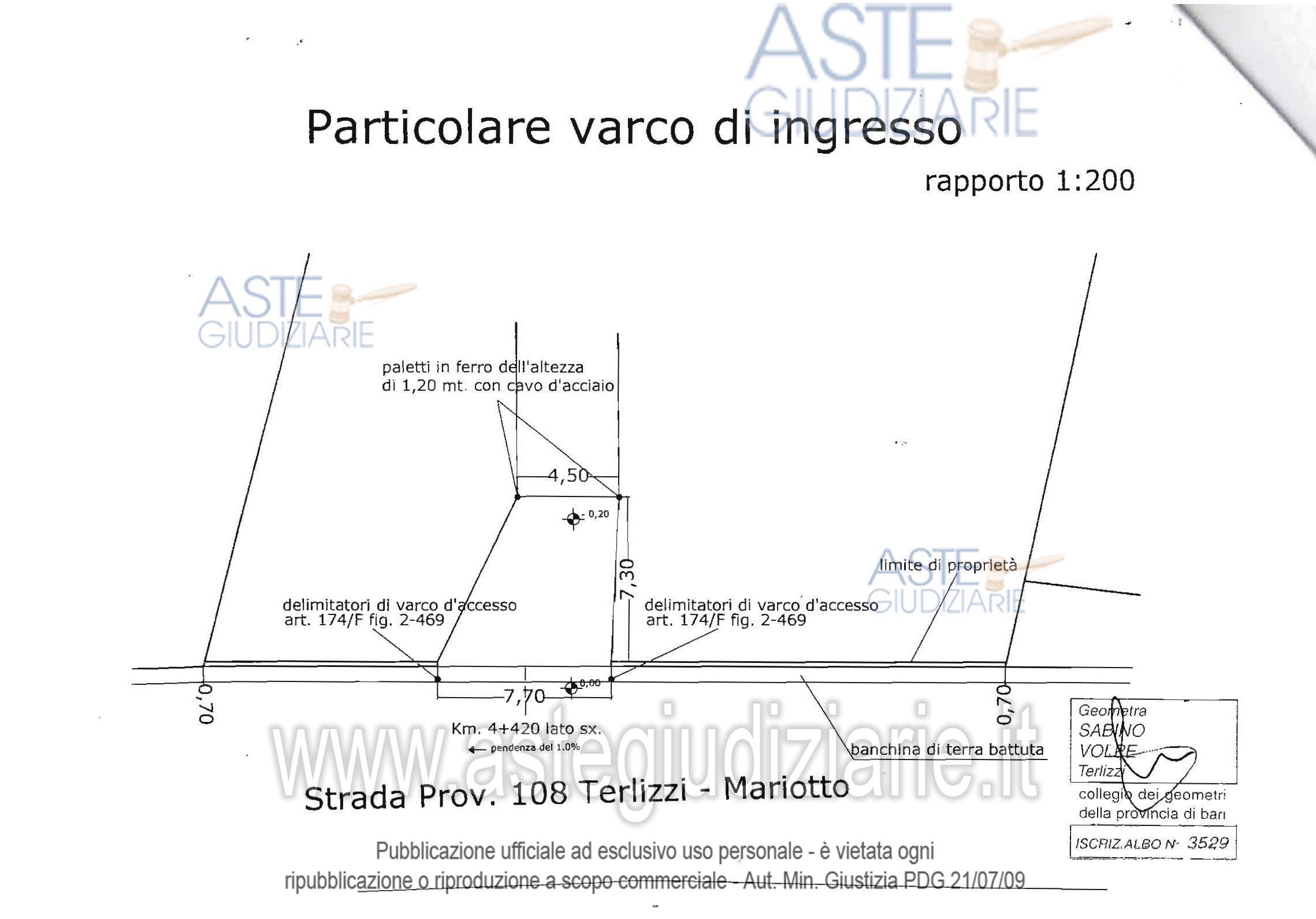 Vendita all'asta Senza incanto, con gara telematica asincrona - LOTTO 2: Full and perfect ownership of a rural property with adjoining access, avenue, and square, as well as 17 olive trees in good condition, located in the Conca d’Oro district, with access from the Provincial Road 108 Terlizzi-Mariotto at Km 4.420, with a total area of approximately 844 square meters. Prezzo base € 14.775,00 (offerta minima € 11.081,25). Data inizio operazioni di vendita: 20/05/2026 ore 10:00. Giudice Dott. Maria Azzurra Guerra. Professionista delegato alla vendita Dott. Giovanna Panzuto. Custode Giudiziario Aste Giudiziarie Inlinea S.P.A. - Email "vendite@astegiudiziarie.it"; Tel. 0586 201480. Rif. Tribunale di Trani - Liquidazione controllata(cci) n. 36/2024