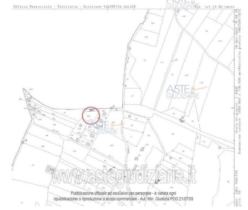 Vendita all'asta Senza incanto, con gara telematica asincrona - LOTTO 1: 1/1 di terreno con diritto di enfiteusi sito in Toritto (BA), frazione di Quasano, riportato nel Catasto Terreni del Comune di Toritto al foglio 50, particella 383, superficie 437 mq, Reddito Domenicale € 0,56, Reddito Agrario € 0,68, qualità mandorleto di classe 5, ed al foglio 50, particella 384, superficie 1.594 mq, Reddito Domenicale € 2,06, Reddito Agrario € 2,47, qualità mandorleto di classe 5. Prezzo base € 2.911,00 (offerta minima € 2.183,25). Data inizio operazioni di vendita: 07/07/2026 ore 17:00. Giudice Dott. Antonio Ruffino. Professionista delegato alla vendita Avv. Michele Carnevale - Email "studiocarnevale@gmail.com"; Tel. 0805235741. Custode Giudiziario Avv. Michele Carnevale - Email "studiocarnevale@gmail.com"; Tel. 0805235741. Rif. Tribunale di Bari - Esecuzione immobiliare post legge 80 n. 175/2022