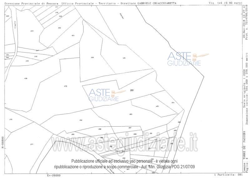 Vendita all'asta Senza incanto, con gara telematica asincrona - LOTTO 15: bene n.41 – intera piena proprietà di appezzamenti di terreno ubicati nel Comune di Torre de’ Passeri (PE), contrada Zappino. Totale superficie convenzionale: circa mq.33.470,00. Prezzo base € 37.650,00 (offerta minima € 28.237,50). Data inizio operazioni di vendita: 31/03/2026 ore 10:30. Professionista delegato alla vendita Avv. Pier Luigi De Rosa - Email "avvpierluigiderosa@virgilio.it;avvantonello@derosastudiolegale.com"; Tel. 085375200. Custode Giudiziario Avv. Pier Luigi De Rosa - Email "avvpierluigiderosa@virgilio.it;avvantonello@derosastudiolegale.com"; Tel. 085375200. Rif. Tribunale di Pescara - Esecuzione immobiliare post legge 80 n. 231/2018