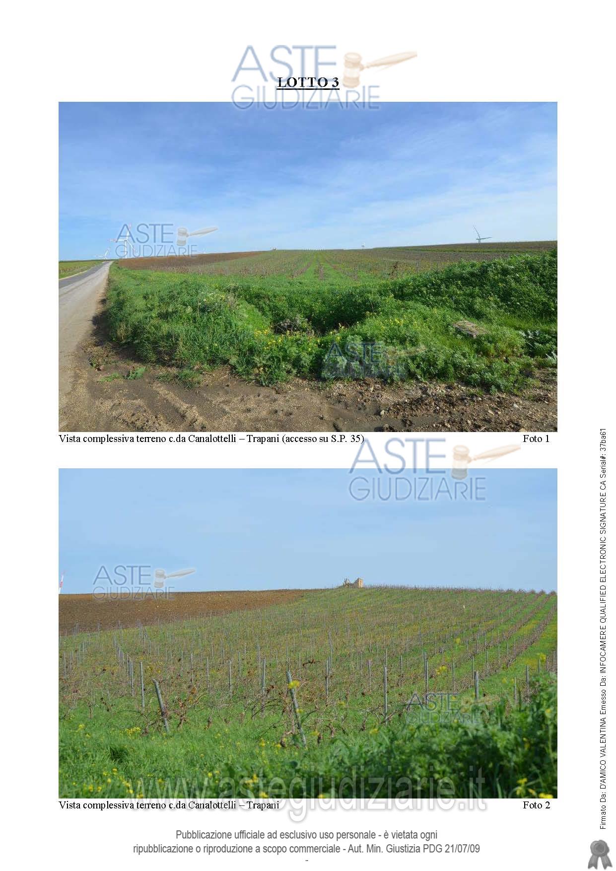 Vendita all'asta Senza incanto, con gara telematica asincrona - LOTTO 3: Piena proprietà per l'intero di un appezzamento di terreno sito nel Comune di Trapani c/da Canalottelli della superficie catastale complessiva di mq.23555. Prezzo base € 59.000,00 (offerta minima € 44.250,00). Data inizio operazioni di vendita: 26/05/2026 ore 11:00. Professionista delegato alla vendita Avv. Dario Guarnotta - Email "darioguarnotta@libero.it"; Cell. 3395948503; Tel. 0923871443. Custode Giudiziario Avv. Dario Guarnotta - Email "darioguarnotta@libero.it"; Cell. 3395948503; Tel. 0923871443. Rif. Tribunale di Trapani - Esecuzione immobiliare post legge 80 n. 90/2021