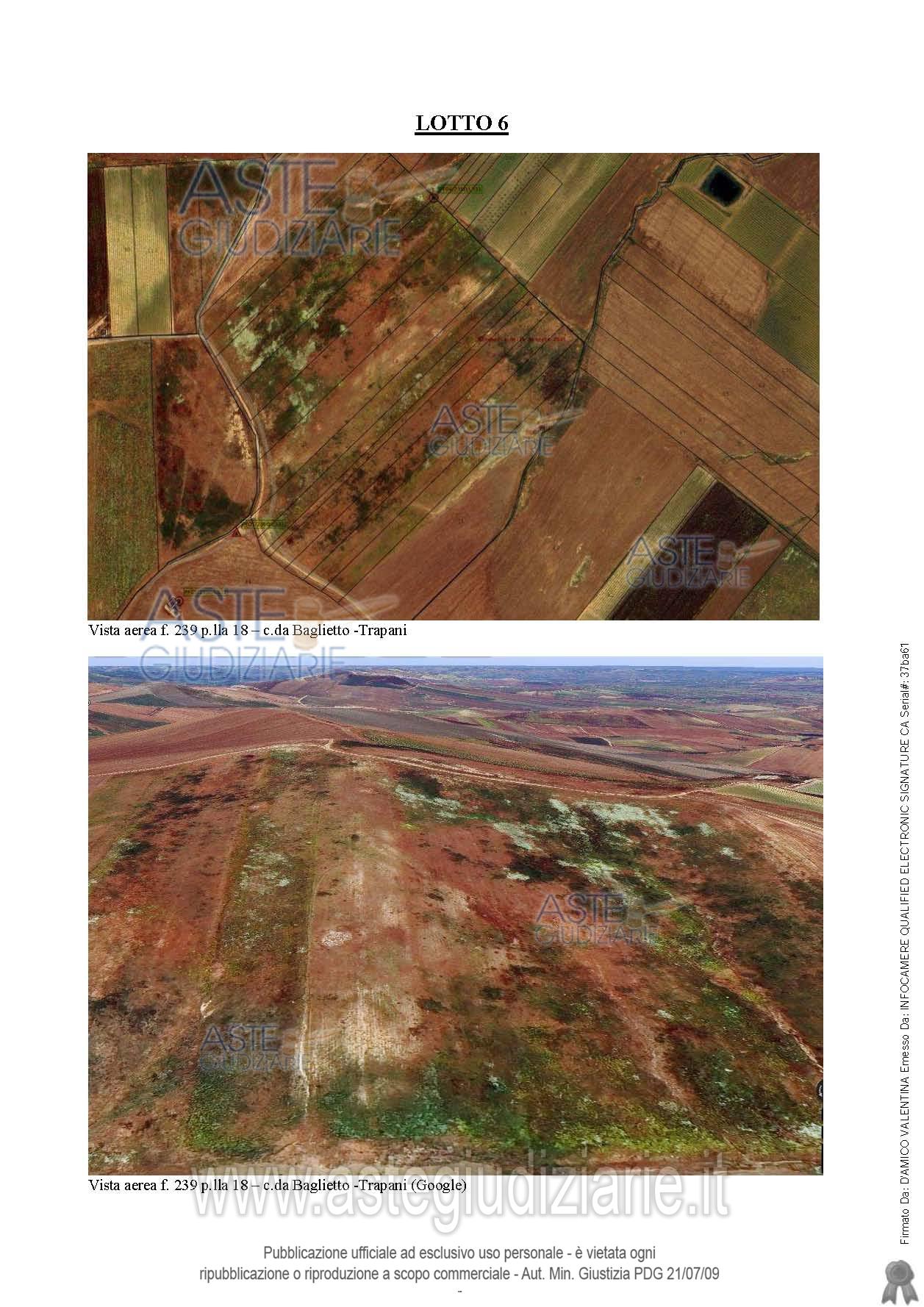 Vendita all'asta Senza incanto, con gara telematica asincrona - LOTTO 6: Piena proprietà per l'intero di un appezzamento di terreno sito nel Comune di Trapani fraz,Fulgatore c/da Baglietto della superficie catastale complessiva di mq.44.510. Prezzo base € 34.000,00 (offerta minima € 25.500,00). Data inizio operazioni di vendita: 26/05/2026 ore 11:00. Professionista delegato alla vendita Avv. Dario Guarnotta - Email "darioguarnotta@libero.it"; Cell. 3395948503; Tel. 0923871443. Custode Giudiziario Avv. Dario Guarnotta - Email "darioguarnotta@libero.it"; Cell. 3395948503; Tel. 0923871443. Rif. Tribunale di Trapani - Esecuzione immobiliare post legge 80 n. 90/2021