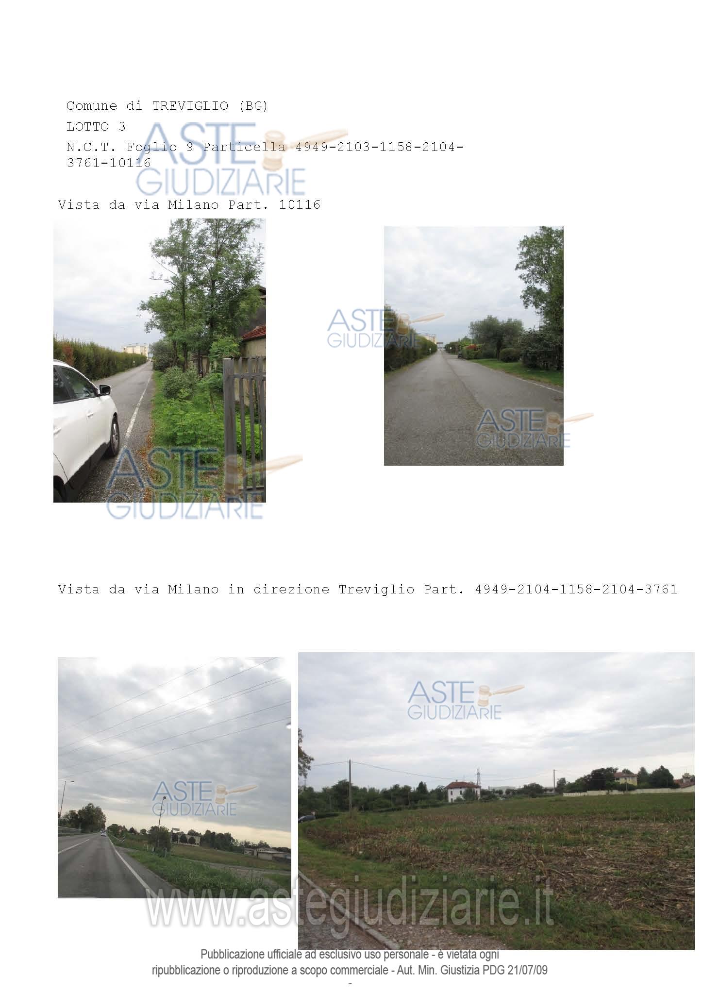 Vendita all'asta Senza incanto, con gara telematica asincrona - LOTTO 3: Terreni di qualità seminativo, seminativo irriguo arboreo siti nell'area ad ovest di Treviglio, compresi nel Parco di Interesse Sovracomunale (PLIS).I terreni sono pianeggianti, facilmente raggiungibili e per lo più di forma regolare e risultano coltivati dall'azienda a cui sono stati affittati.I terreni sono prospicenti strada urbana oggetto di nuova viabilità , via Milano e strada a fondo chiuso che conduce a "Cascina Pellegrina". È ai limiti dell'insediamento urbano della zona Ovest di Treviglio. Prezzo base € 298.680,59 (offerta minima € 224.010,44). Data inizio operazioni di vendita: 03/03/2026 ore 11:00. Professionista delegato alla vendita Dott. Lorenzo Gelmini - Email "gelmini@studioprofessionisti.it"; Cell. 3356255856; Tel. 035231423. Custode Giudiziario Dott. Lorenzo Gelmini - Email "gelmini@studioprofessionisti.it"; Cell. 3356255856; Tel. 035231423. Rif. Tribunale di Bergamo - Espropriazione immobiliare (cartabia) n. 288/2024
