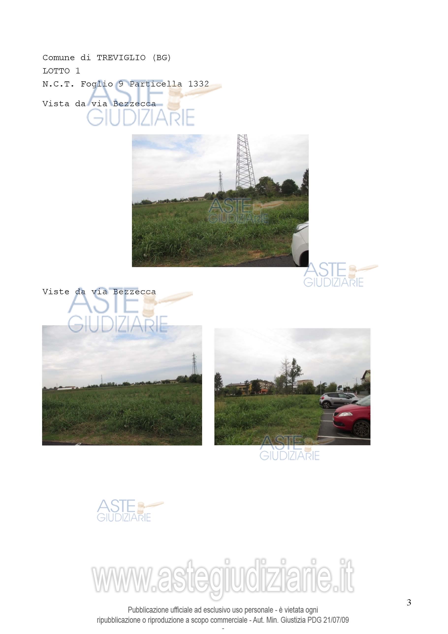 Vendita in attesa dell'emissione del nuovo bando d'asta. LOTTO 1: Terreno agricolo di qualità seminativo, seminativo irriguo arboreo sito nell'area ad ovest di Treviglio, compreso nel Parco di Interesse Sovracomunale (PLIS).Il terreno è pianeggiante, facilmente raggiungibile e per lo più di forma regolare e pianeggiante e risulta coltivato dall'azienda a cui è stato affittato.Condizioni generali dell'immobile: Il terreno è prospicente strada urbana oggetto di nuova viabilità. È quasi intercluso nell'insediamento urbano della zona Ovest di Treviglio. Ultimo prezzo base € 29.392,71 (offerta minima € 22.044,53). Professionista delegato alla vendita Dott. Lorenzo Gelmini - Email "gelmini@studioprofessionisti.it"; Cell. 3356255856; Tel. 035231423. Custode Giudiziario Dott. Lorenzo Gelmini - Email "gelmini@studioprofessionisti.it"; Cell. 3356255856; Tel. 035231423. Rif. Tribunale di Bergamo - Espropriazione immobiliare (cartabia) n. 288/2024