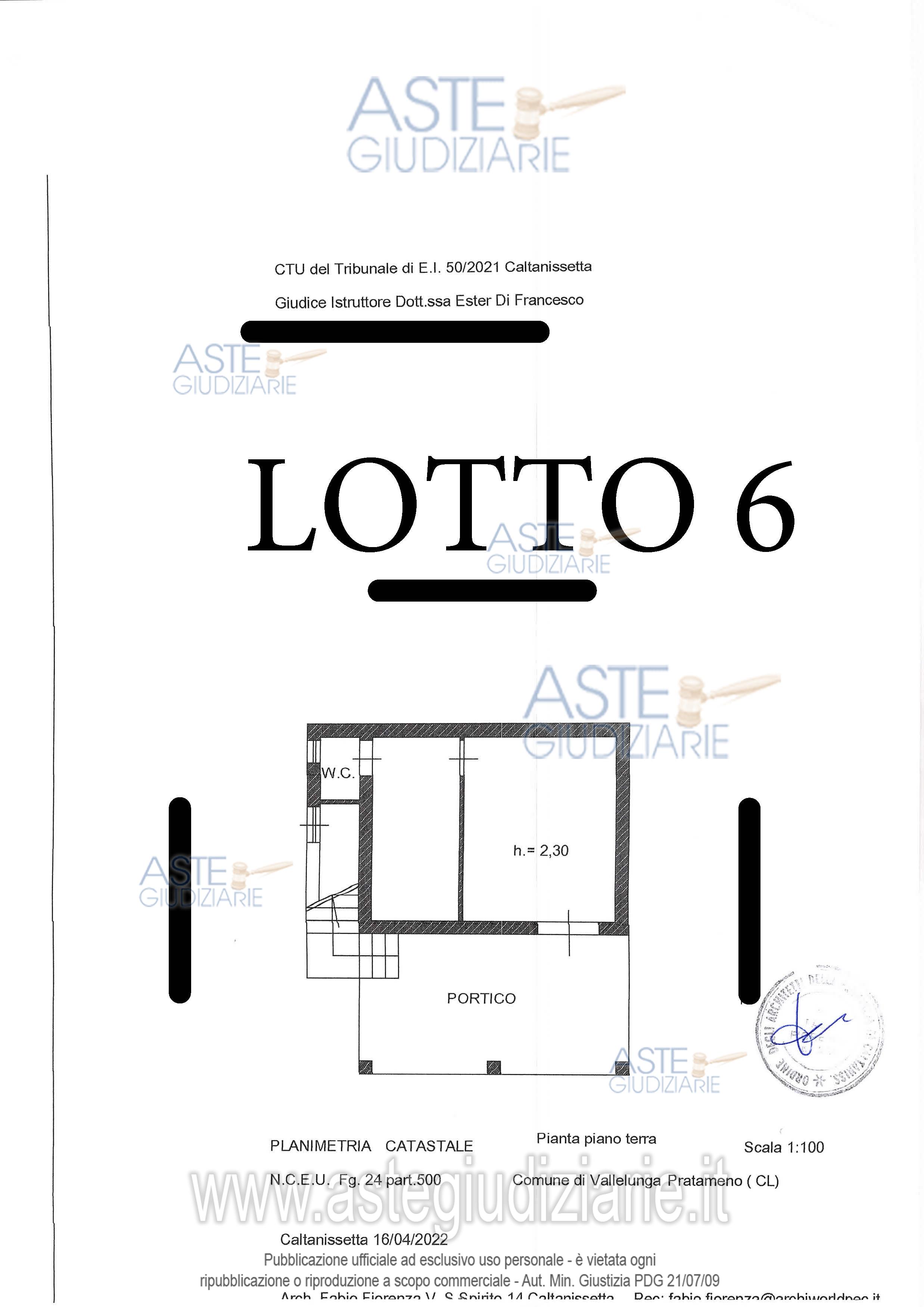 Vendita in attesa dell'emissione del nuovo bando d'asta. LOTTO 6: LOTTO SEI - Bene 1) Piena proprietà di un terreno agricolo con giacitura in lieve declivio, dotato di un pozzo artesiano, di recinzione in rete e paletti metallici. Bene 2) Piena proprietà di costruzione per civile abitazione di tipo economico edificata sul fondo di cui al Bene 1. Ultimo prezzo base € 8.483,48 (offerta minima € 6.362,61). Giudice Ester Rita Difrancesco. Professionista delegato alla vendita Dott. Michele Savoja. Custode Giudiziario Dott. Michele Savoja - Email "michele.savoja@alice.it"; Tel. 0934591010. Rif. Tribunale di Caltanissetta - Esecuzione immobiliare post legge 80 n. 50/2021