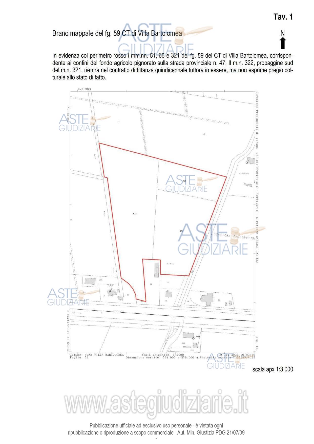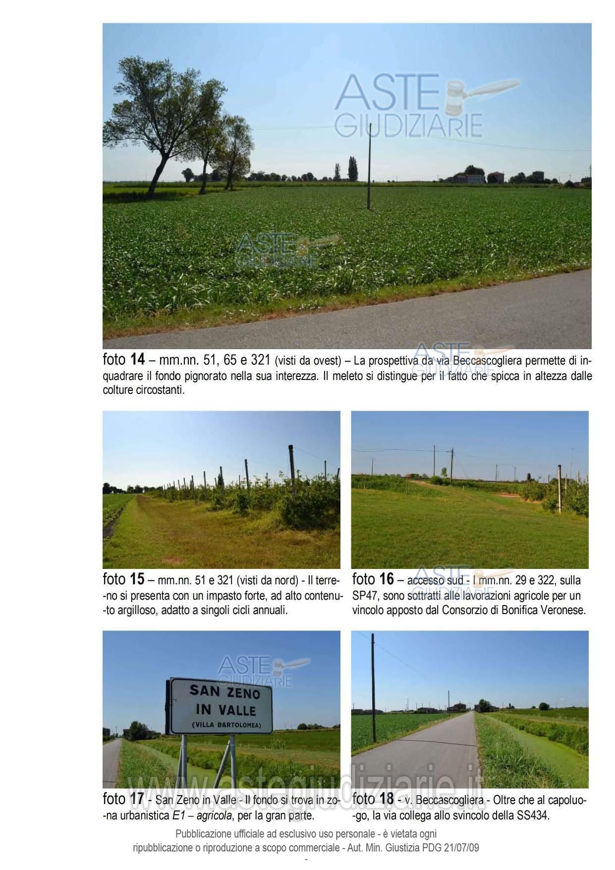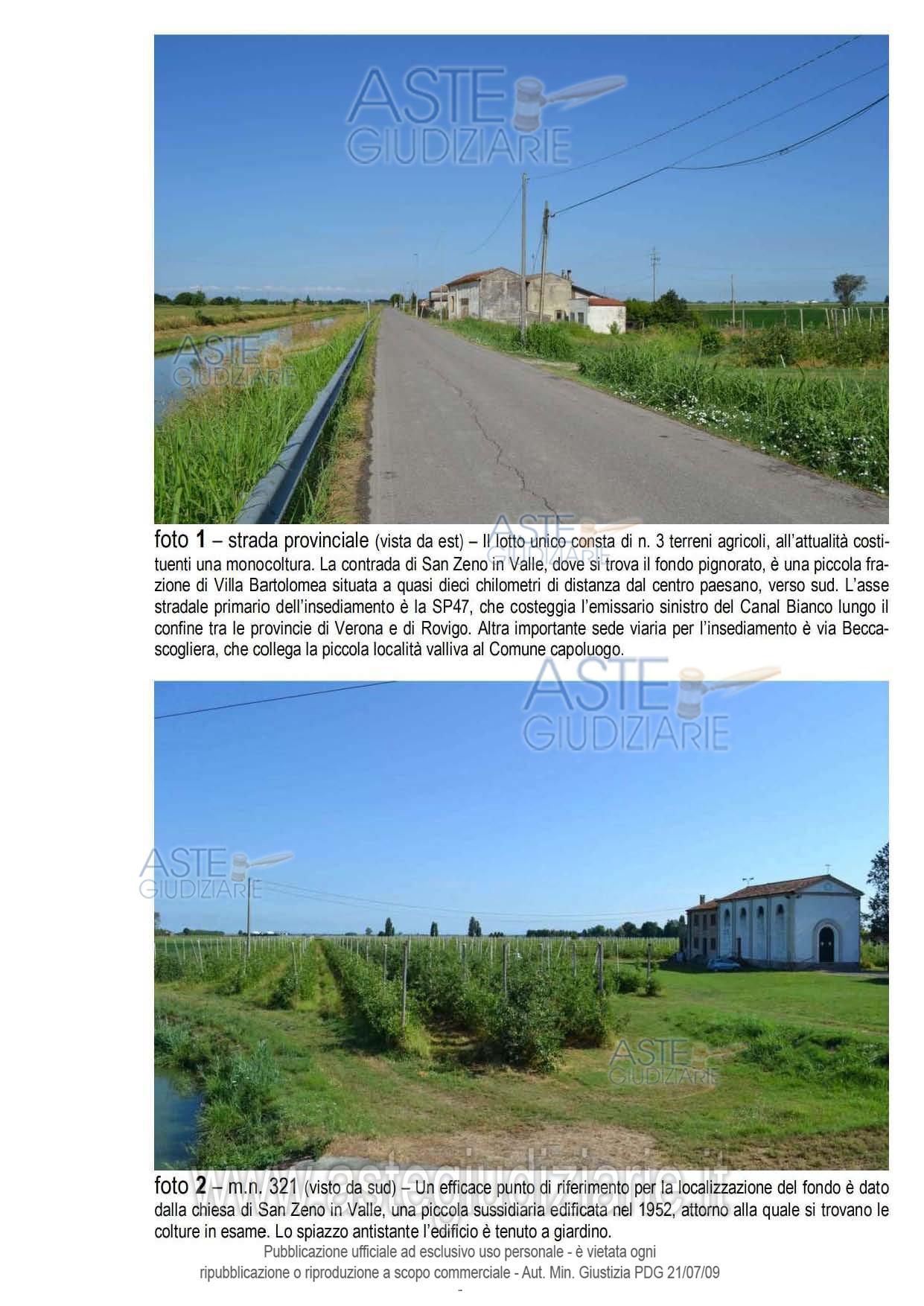 Vendita all'asta Senza incanto, con gara telematica sincrona mista - LOTTO UNICO: LOTTO UNICO - In Villa Bartolomea (VR), San Zeno in Valle, in fregio al lato nord di via Marola, un ramo della S.P. n. 47, piena proprietà di fondo agricolo costituito da tre terreni, tenuti a meleto dal fittavolo, accessibile dalla pubblica via (SP47) da due ingressi carrabili distinti, per superficie totale di 47.488,00 m² catastali. Prezzo base € 252.000,00 (offerta minima € 189.000,00). Data vendita 09/07/2026 ore 14:00. Giudice: Francesco Fontana.