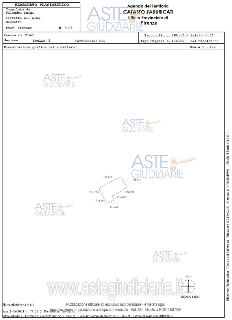 Vendita all'asta Senza incanto, con gara telematica sincrona - LOTTO 4: Piena proprietà sull'intero di unità immobiliare collabente sita in Vinci (FI), Via Tigliano snc, costituita dal solo piano fondale delle murature perimetrali libera su tre lati. Prezzo base € 7.700,00 (offerta minima € 5.775,00). Data vendita 11/06/2026 ore 16:30. Giudice Francesca Romana Bisegna. Professionista delegato alla vendita Avv. Nico Bricoli - Email "nicobricoli@virgilio.it". Custode Giudiziario Istituto Vendite Giudiziarie Di Firenze - Email "prenota.fi@isveg.it"; Tel. 0552340830. Rif. Tribunale di Firenze - Espropriazione immobiliare (cartabia) n. 76/2024