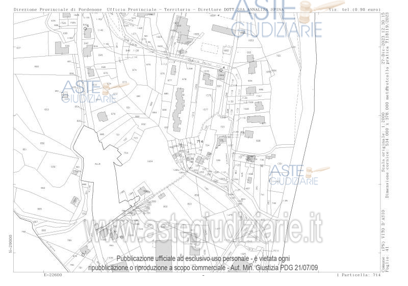 Vendita all'asta Senza incanto, con gara telematica sincrona mista - LOTTO 1: LOTTO 1B: Terreno edificabile costituito da 3 particelle, di superficie pari a mq 1841 posto in posizione retrostante all'abitazione lotto 1A. Irregolare ed edificabile per il 100% della superficie. Ricadono in zona omogenea B3 - zone residenziali omogenee B - completamento B3. Prezzo base € 19.200,00 (offerta minima € 14.400,00). Data vendita 19/11/2025 ore 15:00. Giudice Dott. Elisa Tesco. Professionista delegato alla vendita Not. Maurizio Ascanio - Email "esecuzioniimmobiliari@studionotaioascanio.it". Custode Giudiziario Ass. Not. Custode Giudiziario - Email "custodi@associazionenotarile.pn.it"; Tel. 3294536349. Rif. Tribunale di Pordenone - Espropriazione immobiliare (cartabia) n. 59/2023