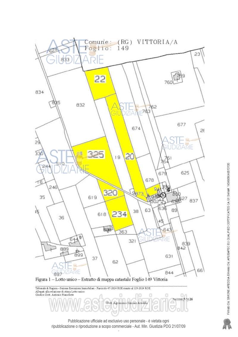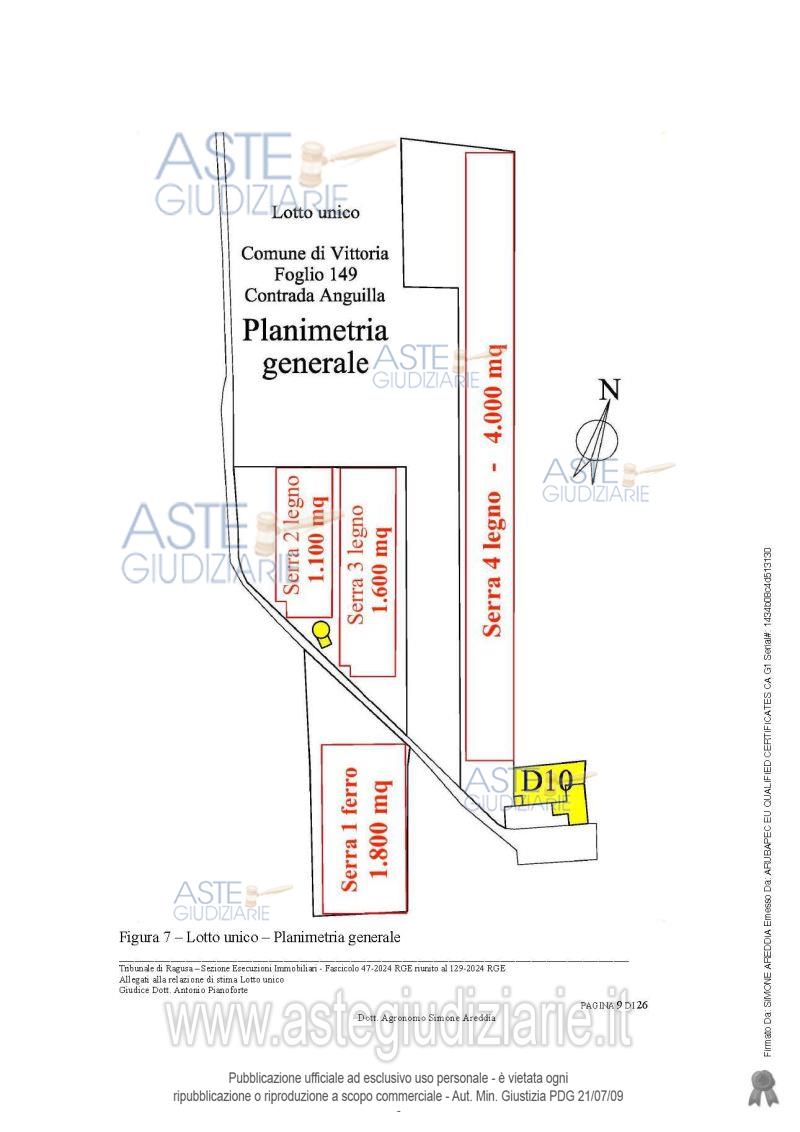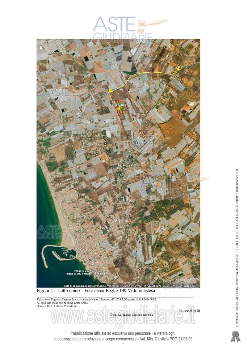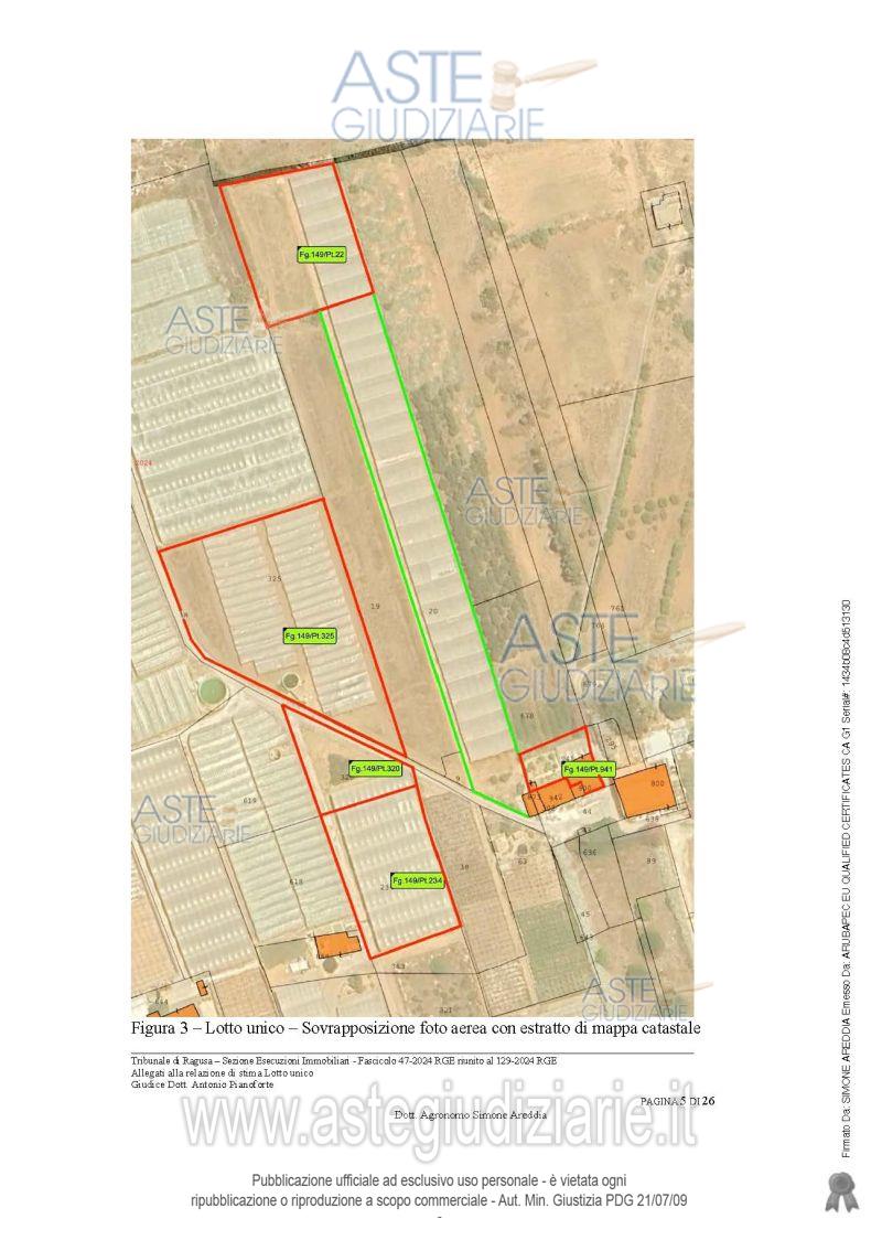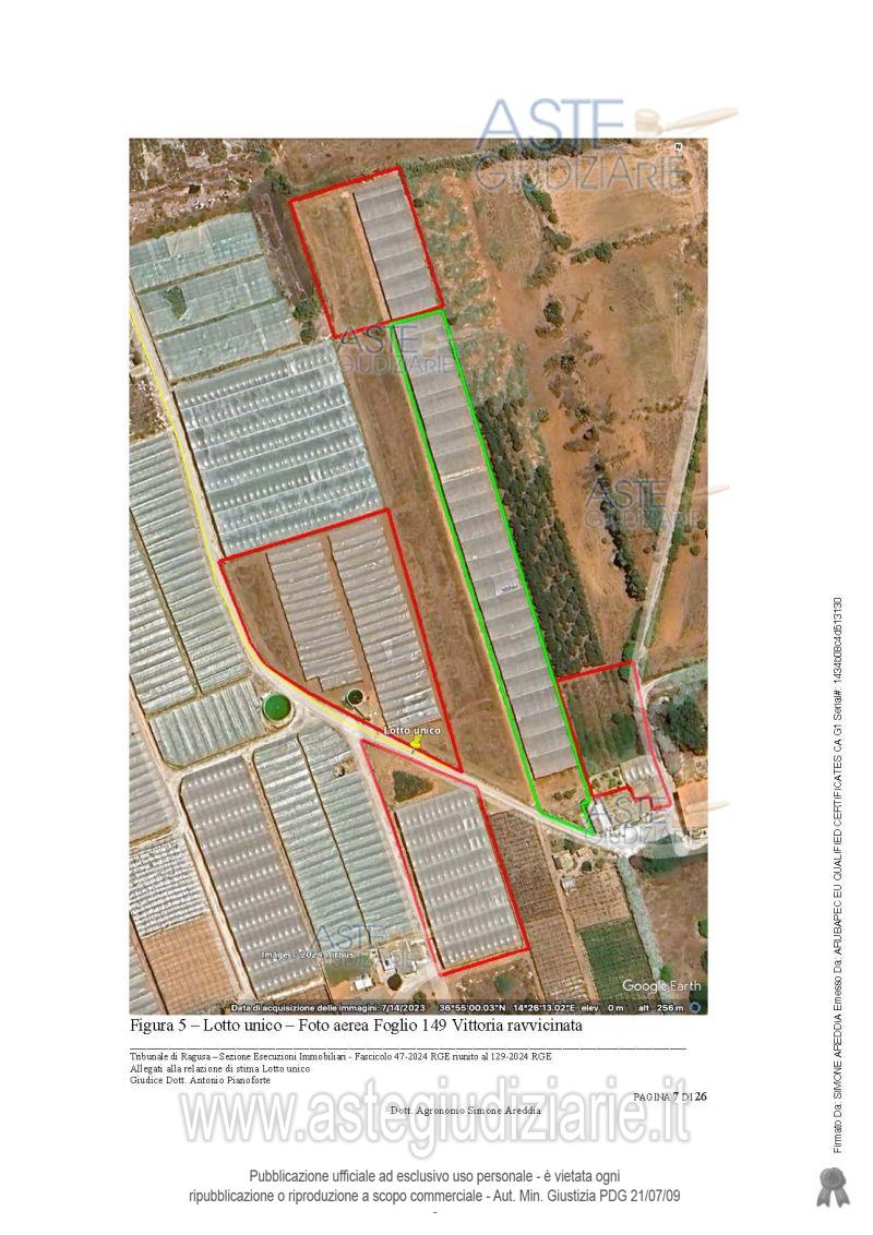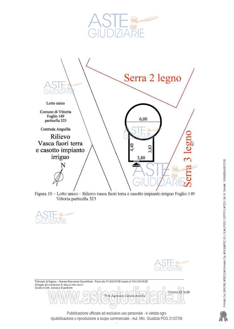 Vendita all'asta Senza incanto, con gara telematica sincrona mista - LOTTO 1: Terreno superficie mq. 13550 con impianti serricoli, deposito agricolo e vasca fuori terra per raccolta acqua. Prezzo base € 52.500,00 (offerta minima € 39.375,00). Data vendita 29/04/2026 ore 16:00. Giudice Carlo Di Cataldo. Professionista delegato alla vendita Dott. Giovanna Scifo - Email "g.scifo@gmail.com". Custode Giudiziario Dott. Giovanna Scifo - Email "g.scifo@gmail.com"; Tel. 3392519150. Rif. Tribunale di Ragusa - Espropriazione immobiliare (cartabia) n. 47/2024