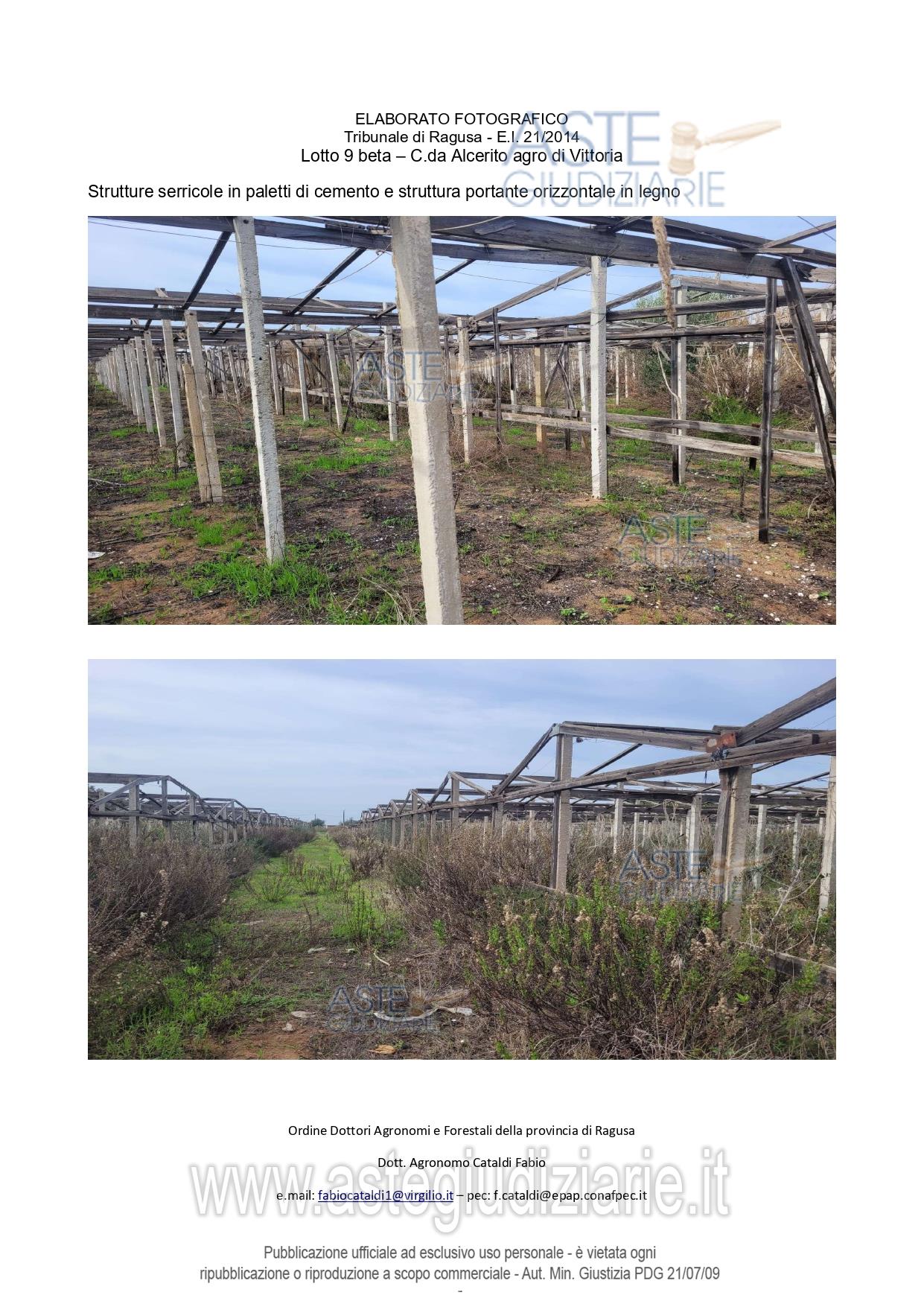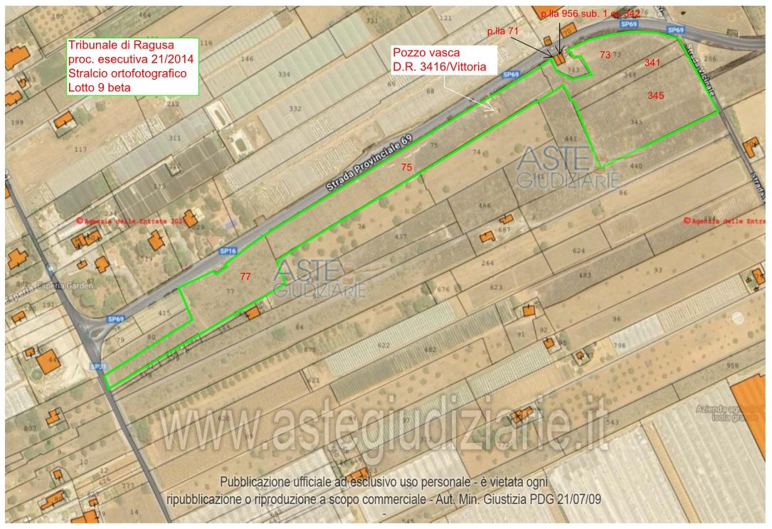Vendita all'asta Senza incanto, con gara telematica sincrona mista - LOTTO 9: Lotto 9 BETA: 1/1 diritto di usufrutto 1/4 diritto di proprietà per alcune particelle di terreni agricoli contigui, costituenti un unico appezzamento di forma irregolare, in passato utilizzati per la coltivazione di ortaggi in ambiente protetto, in cui è presente un rudere di un ex fabbricato rurale,ubicati in Vittoria c.da Alcerito. Prezzo base € 33.295,07 (offerta minima € 24.971,30). Data vendita 26/05/2026 ore 16:00. Giudice Francesco Rio. Professionista delegato alla vendita Dott. Maria La Raffa - Email "maria.laraffa@gmail.com". Custode Giudiziario Dott. Maria La Raffa - Email "maria.laraffa@gmail.com"; Tel. 0932957821. Rif. Tribunale di Ragusa - Esecuzione immobiliare post legge 80 n. 21/2014