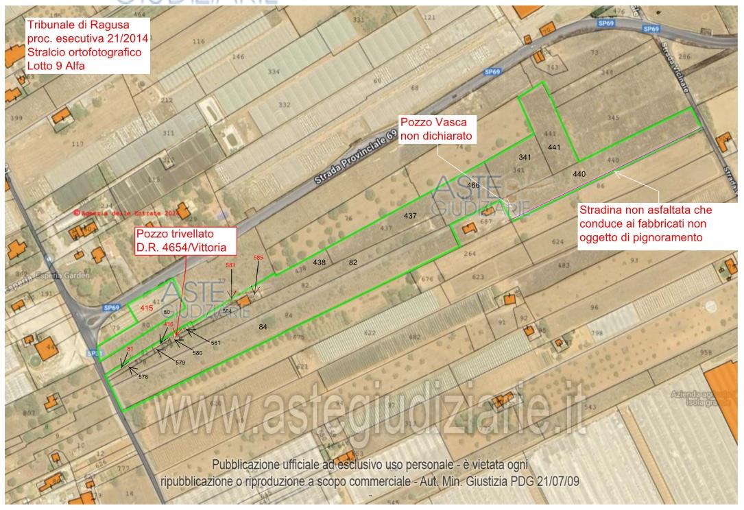 Vendita all'asta Senza incanto, con gara telematica sincrona mista - LOTTO 9: Lotto 9 ALFA: Diritto di proprietà di 1/1 e di 1/3 (limitatamente ad alcune particelle) di terreni contigui che costituiscono un unico appezzamento di forma irregolare, in passato utilizzato per la coltivazione di ortaggi in ambiente protetto, ubicati in agro di Vittoria sez. A, c.da Alcerito. All’interno del fondo si rileva una superficie complessiva di circa mq. 20.000 di strutture serricole realizzate in paletti di cemento e struttura orizzontale in legno. Prezzo base € 98.206,17 (offerta minima € 73.654,63). Data vendita 26/05/2026 ore 15:00. Giudice Francesco Rio. Professionista delegato alla vendita Dott. Maria La Raffa - Email "maria.laraffa@gmail.com". Custode Giudiziario Dott. Maria La Raffa - Email "maria.laraffa@gmail.com"; Tel. 0932957821. Rif. Tribunale di Ragusa - Esecuzione immobiliare post legge 80 n. 21/2014