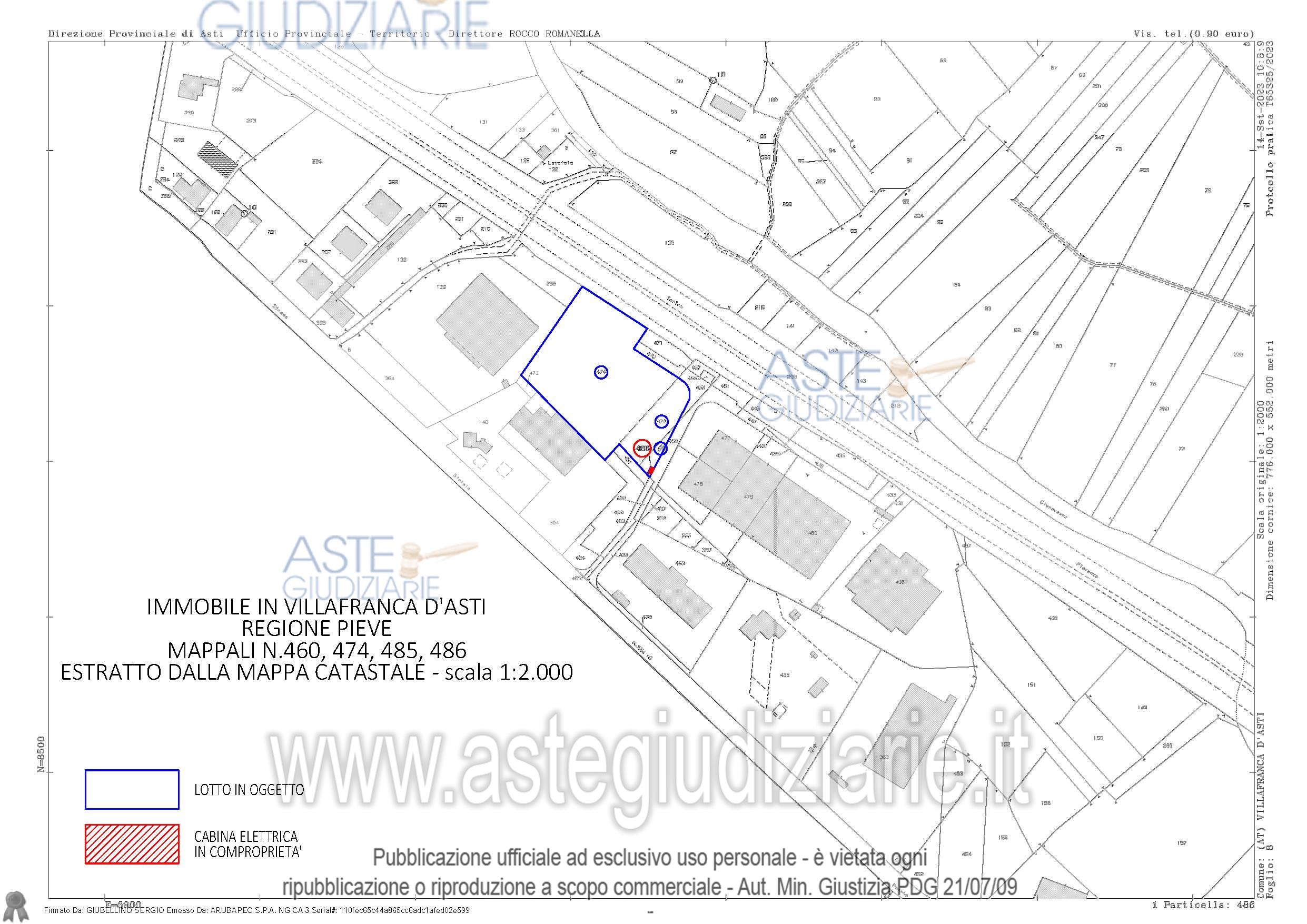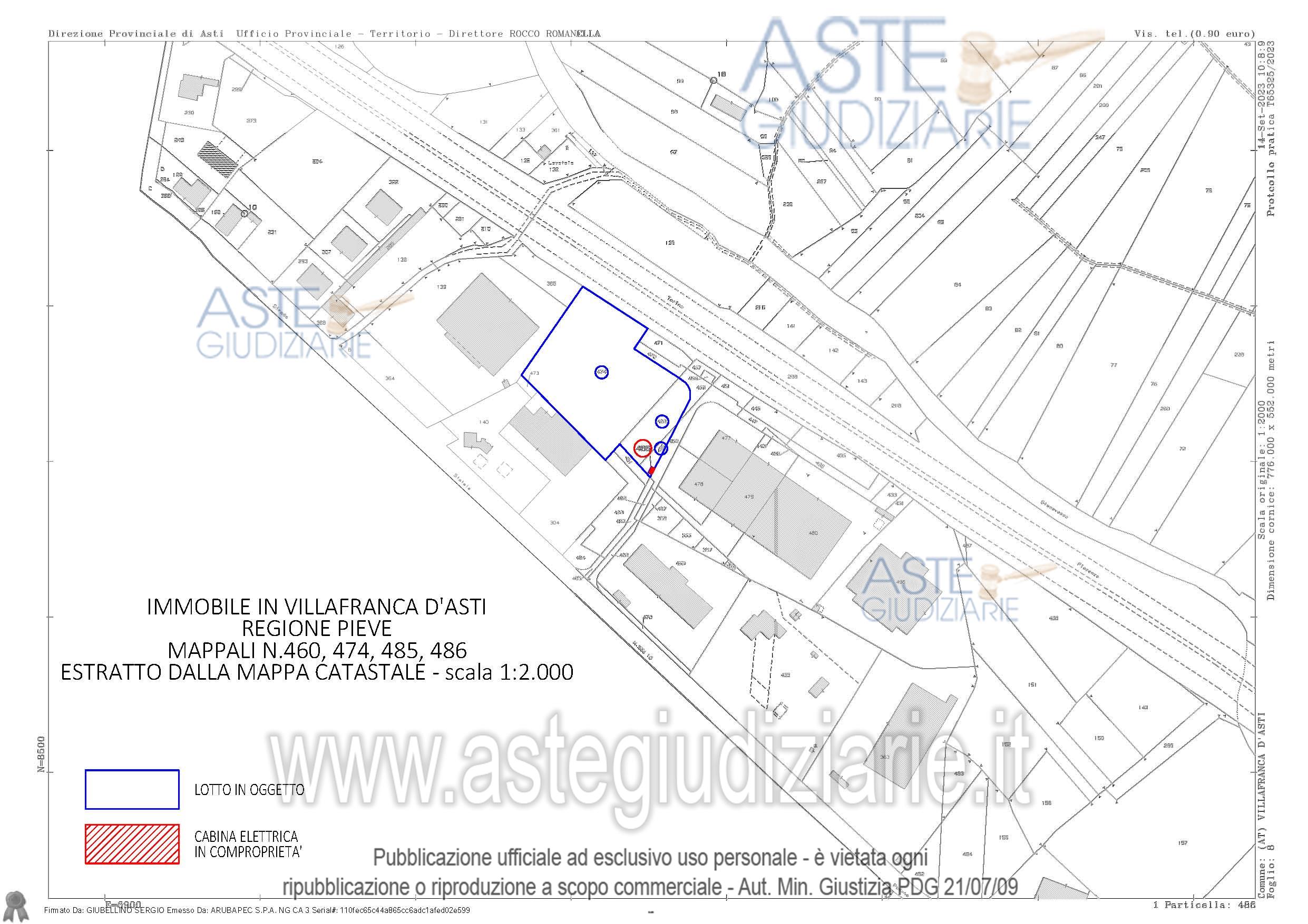 Vendita all'asta Senza incanto, con gara telematica asincrona - LOTTO 4: Terrain constructible à usage productif, situé de manière plane et de forme irrégulière, d'une superficie de 7210 mètres carrés, comprenant une part équivalente à 26/100 de la pleine propriété sur une cabine électrique louée à ENEL et construite pour fournir de l'électricité aux nouvelles activités installées dans les bâtiments industriels. Prezzo base € 215.000,00 (offerta minima € 215.000,00). Data inizio operazioni di vendita: 18/03/2026 ore 09:30. Giudice Dott. Andrea Carena. Custode Giudiziario Aste Giudiziarie Inlinea Spa - Email "vendite@astegiudiziarie.it"; Tel. 0586 201480. Curatore Avv. Dario Gramaglia - Tel. 0173 281365. Rif. Tribunale di Asti - Liquidazione giudiziale(cci) n. 2/2023
