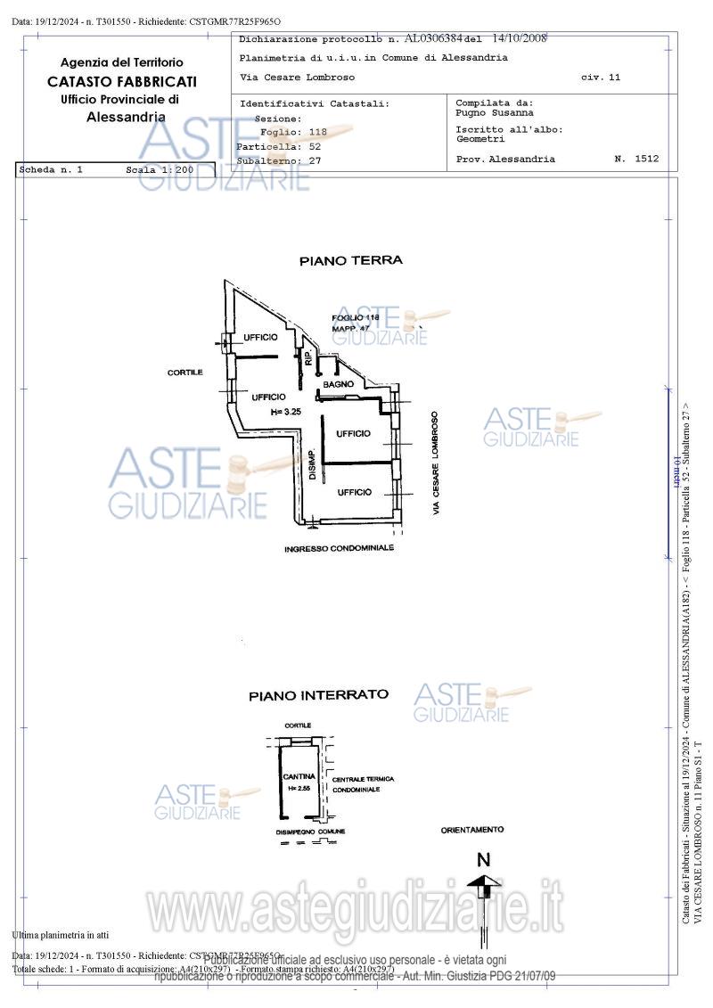 Vendita all'asta Senza incanto - LOTTO UNICO: Alloggio posto al piano rialzato di Condominio, composto da ingresso, cucina, tinello, soggiorno, camera da letto, bagno, ripostiglio e cantina. Su richiesta dell'aggiudicatario la Liquidazione Giudiziale procederà a sua cura e spese alla modifica della categoria catastale da A/10 a categoria abitativa. Prezzo base € 37.000,00 (offerta minima € 37.000,00). Data vendita 28/01/2026 ore 14:00. Curatore Avv. Gabriella Massa - Email "info@avvocatomassa.com"; Tel. 0131251524. Rif. Tribunale di Alessandria - Liquidazione giudiziale(cci) n. 61/2024