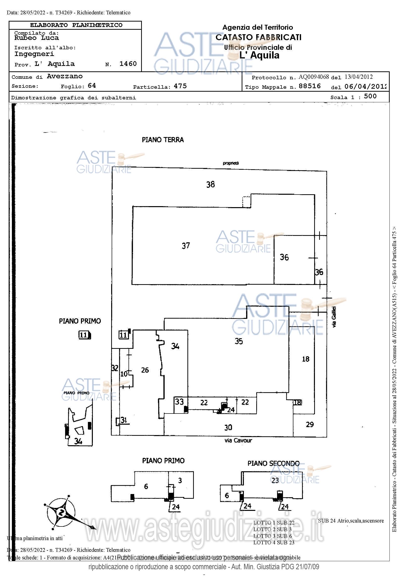 Vendita all'asta Senza incanto, con gara telematica asincrona - LOTTO 04: Ufficio ubicato ad Avezzano (AQ) in via Cavour, piano 2.Locali posti al piano secondo dell'immobile p.lla 1548 con destinazione uffici.L'Immobile viene posto in vendita per il diritto di Proprietà 1/1. Prezzo base € 43.609,18 (offerta minima € 32.706,88). Data inizio operazioni di vendita: 19/05/2026 ore 16:00. Giudice Gabriele Gatto. Professionista delegato alla vendita Avv. Maria Pia Croce - Email "mpcroce@tiscali.it"; Tel. 0863455222. Custode Giudiziario Avv. Maria Pia Croce - Email "mpcroce@tiscali.it"; Tel. 0863455222. Rif. Tribunale di Avezzano - Esecuzione immobiliare post legge 80 n. 52/2020
