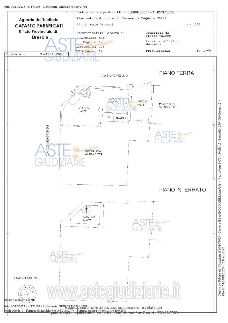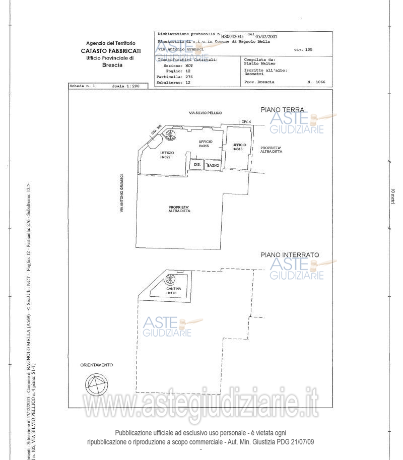 Vendita all'asta Senza incanto, con gara telematica asincrona - LOTTO 1: Piena proprietà di ufficio al piano terra con una porzione interrata a destinazione ripostiglio. Prezzo base € 85.500,00 (offerta minima € 64.125,00). Data inizio operazioni di vendita: 11/06/2026 ore 10:00. Professionista delegato alla vendita: Not. Giuseppina Scoletta - Email "gscoletta@notariato.it"; Tel. 030/222849.
