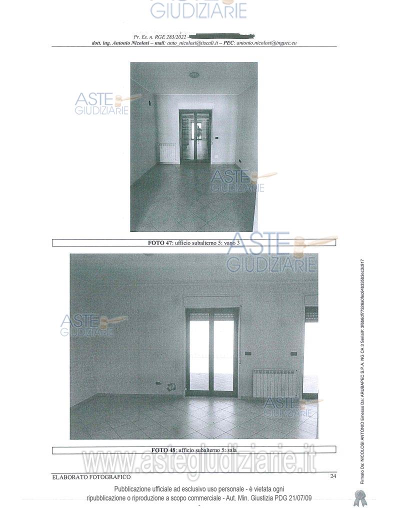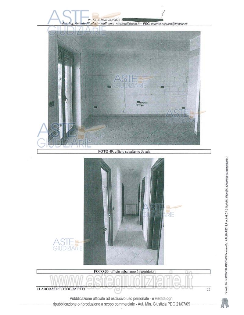 Vendita all'asta Senza incanto, con gara telematica sincrona mista - LOTTO 4: LOTTO QUATTRO Immobile ad uso ufficio posto al primo piano del fabbricato sito in Belpasso, contrada Scagliola, censito al N.C.E.U. al foglio 30, particella 214, subalterno 5, categoria A/10, classe U, consistenza 6 vani, superficie catastale 137 m2, rendita 852,15 euro, confinante a sud con appartamento della stessa ditta (sub 6), ad ovest con proprietà della stessa ditta (sub 9), a nord e ad est con cortile comune. Prezzo base € 61.688,00 (offerta minima € 46.266,00). Data vendita 12/12/2025 ore 11:00. Professionista delegato alla vendita Avv. Giovanni Fichera - Email "studiofichera@virgilio.it"; Tel. 095388875. Custode Giudiziario Avv. Giovanni Fichera - Email "studiofichera@virgilio.it"; Tel. 095388875. Rif. Tribunale di Catania - Esecuzione immobiliare post legge 80 n. 283/2022