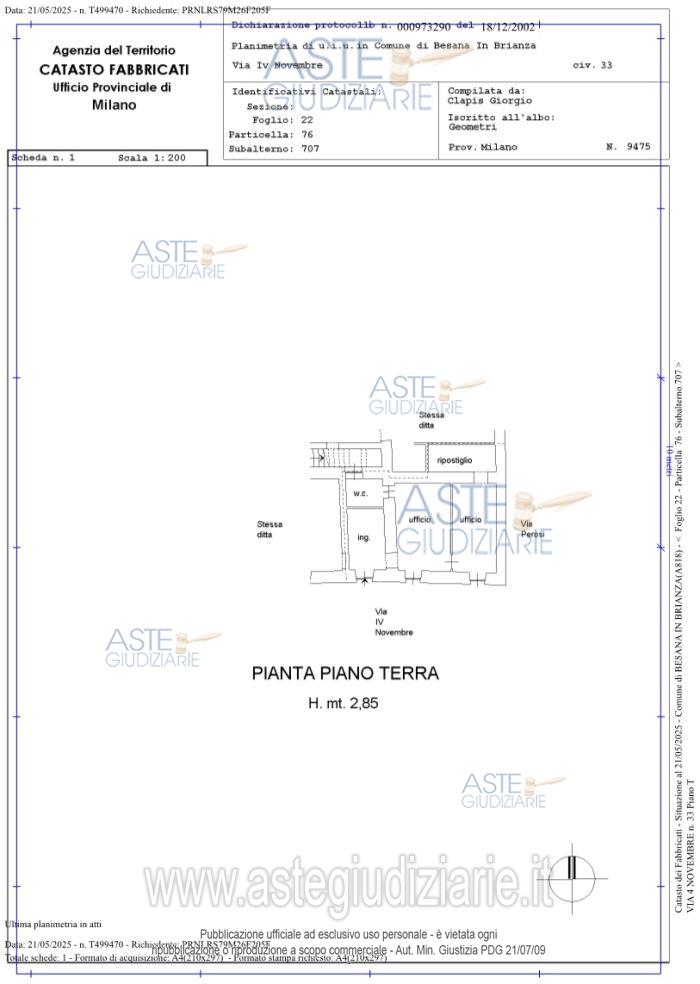 Vendita all'asta Senza incanto, con gara telematica sincrona - LOTTO 1: Ufficio di mq. 68, piano terreno, 3 locali studio, un locale ripostiglio, un servizio igienico con annesso spazio ripostiglio in sottoscala. Prezzo base € 60.000,00 (offerta minima € 45.000,00). Data vendita 27/03/2026 ore 10:00. Giudice Francesco Ambrosio. Professionista delegato alla vendita Dott. Ciro Fiore. Custode Giudiziario Dott. Ciro Fiore - Email "fiore@studio-commercialisti.it"; Tel. 0392720446. Rif. Tribunale di Monza - Espropriazione immobiliare (cartabia) n. 498/2024